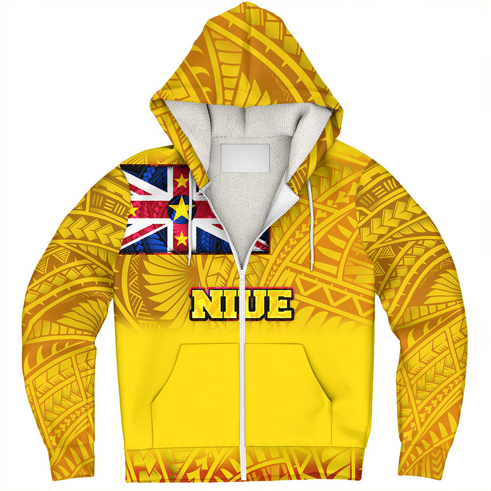 Niue Sherpa Hoodie Flag Color With Traditional Patterns
