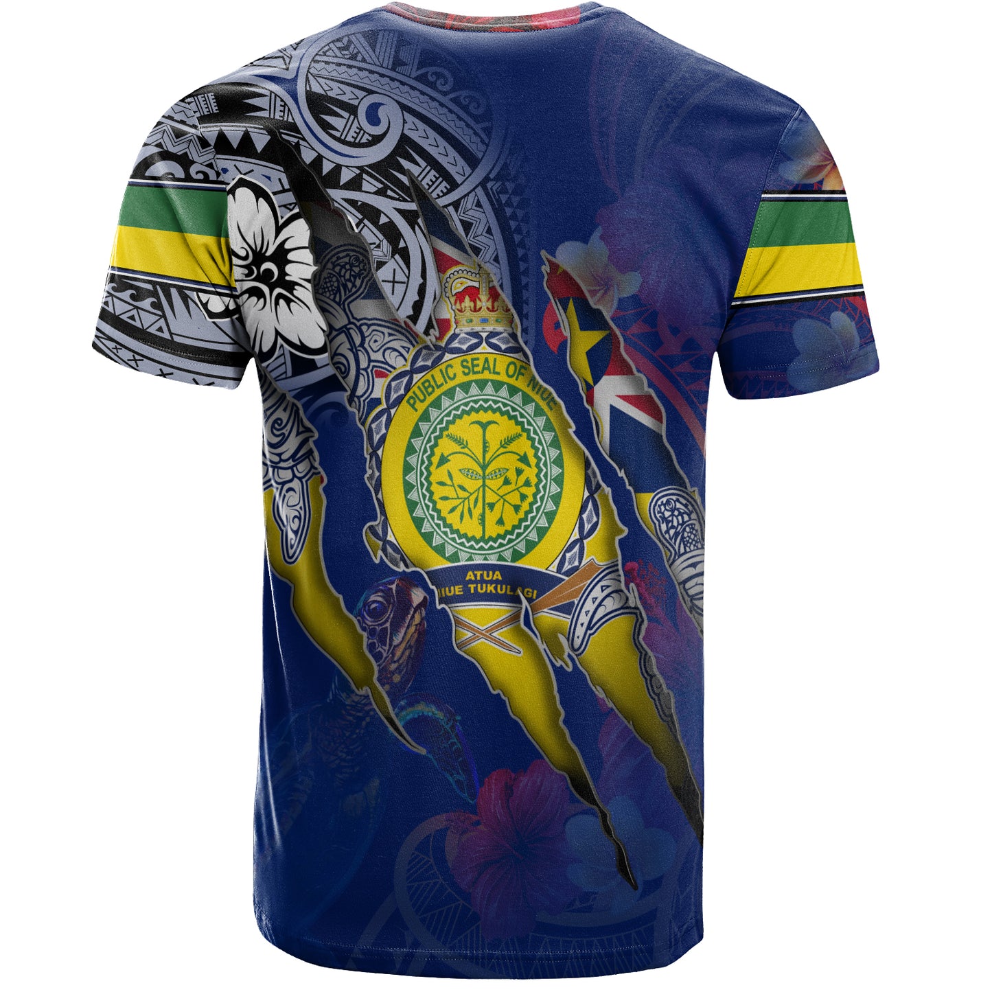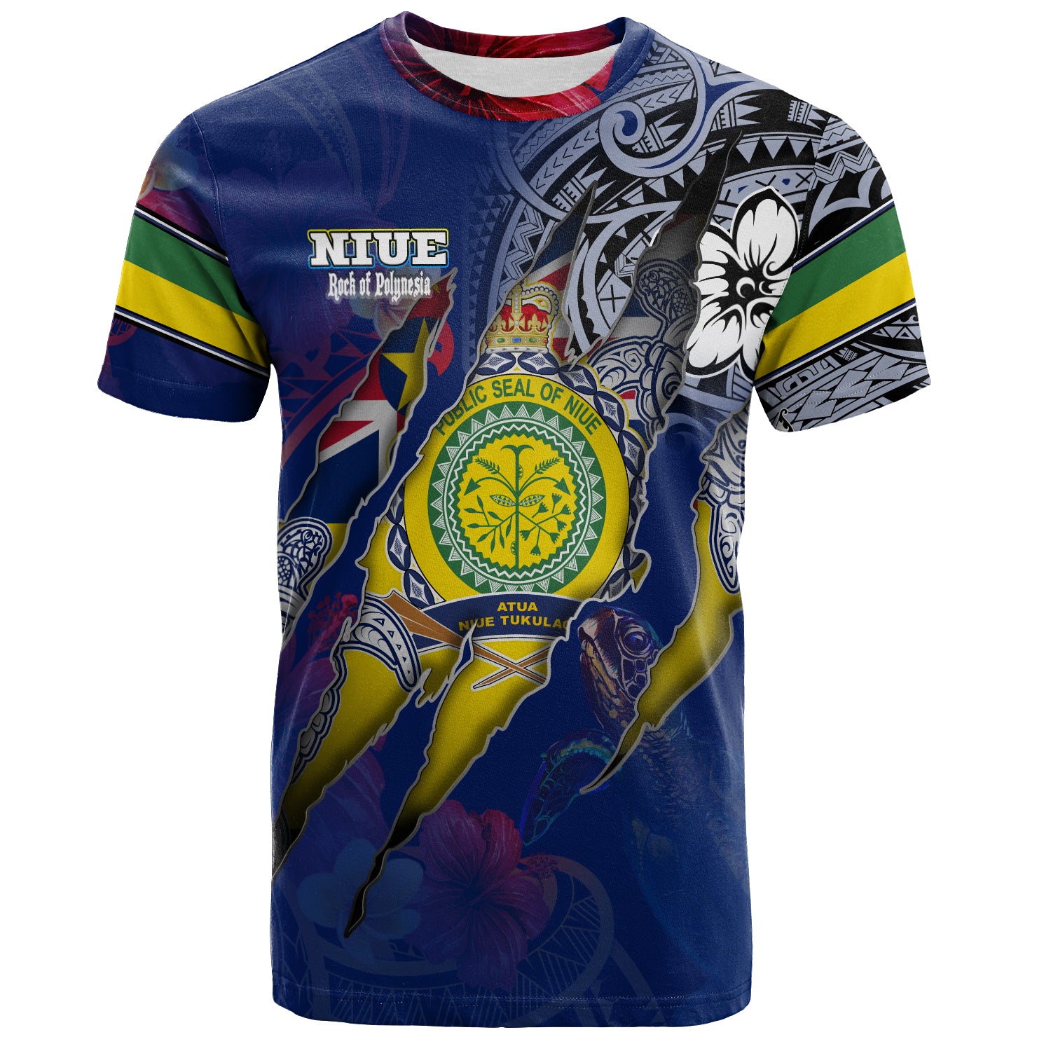 Niue T-Shirt Custom Niuean Blood Inside Me Polynesian Sleeve Tattoo Tropical Blue