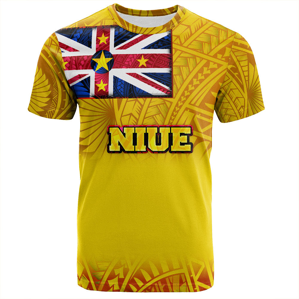 Niue T-Shirt Flag Color With Traditional Patterns