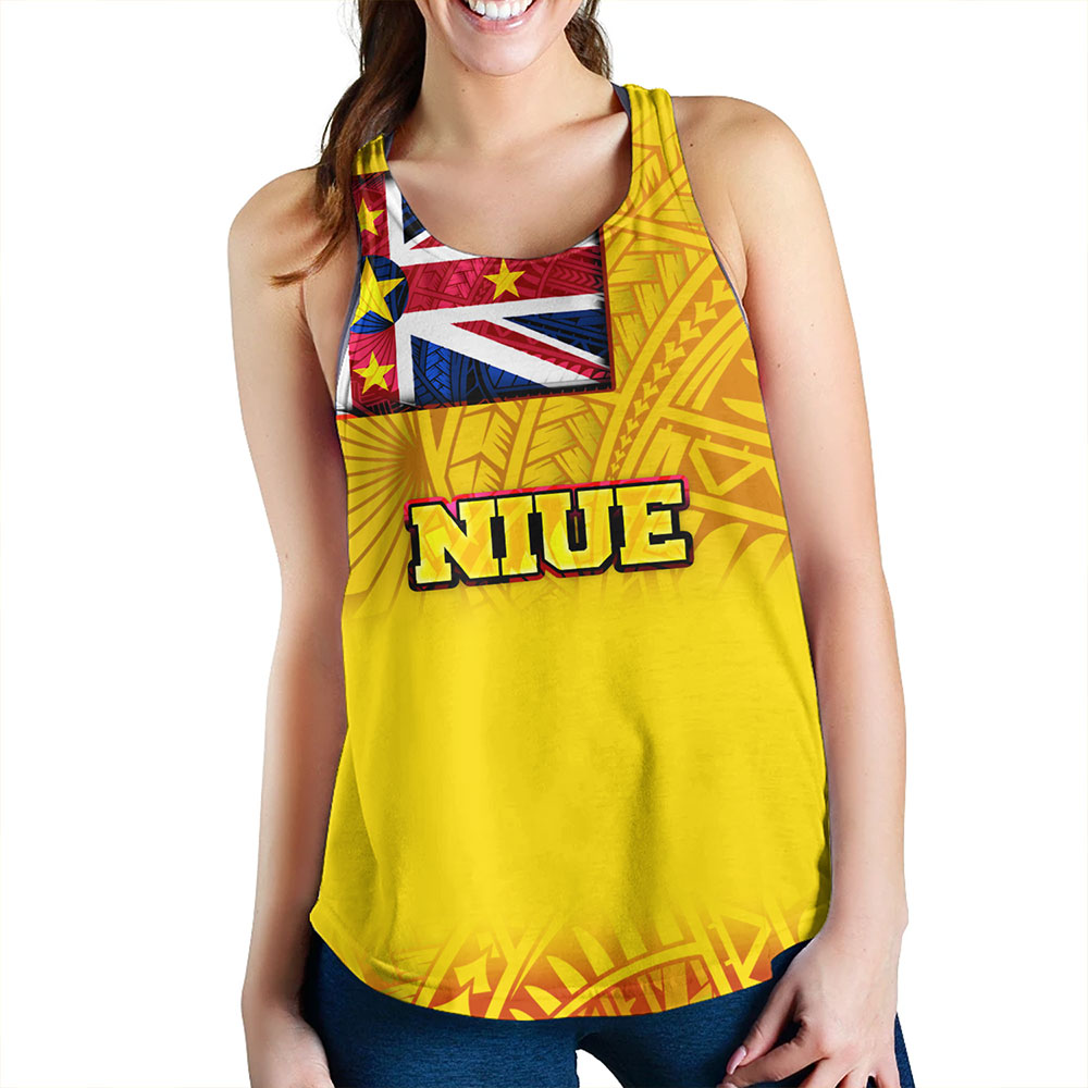 Niue Women Tank Flag Color With Traditional Patterns