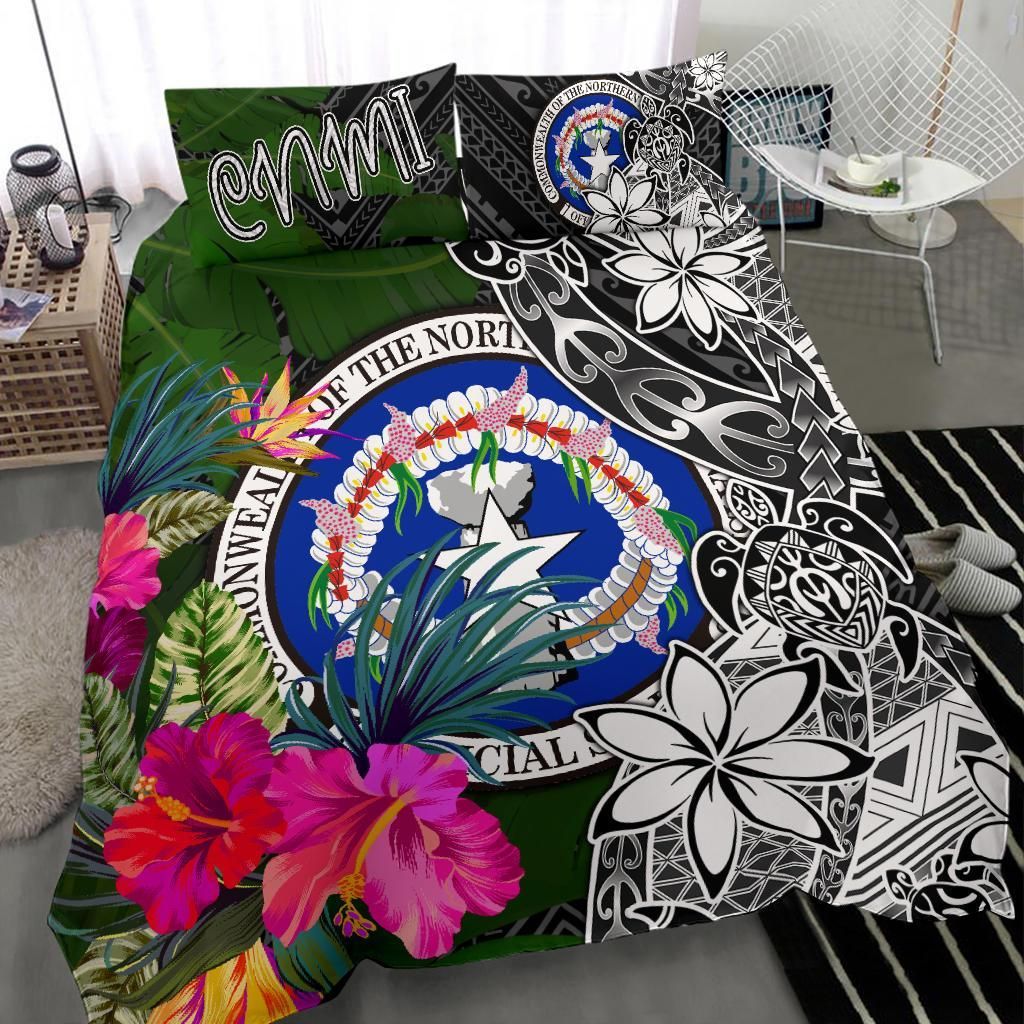 Northern Mariana Islands Bedding Set - Turtle Plumeria Banana Leaf