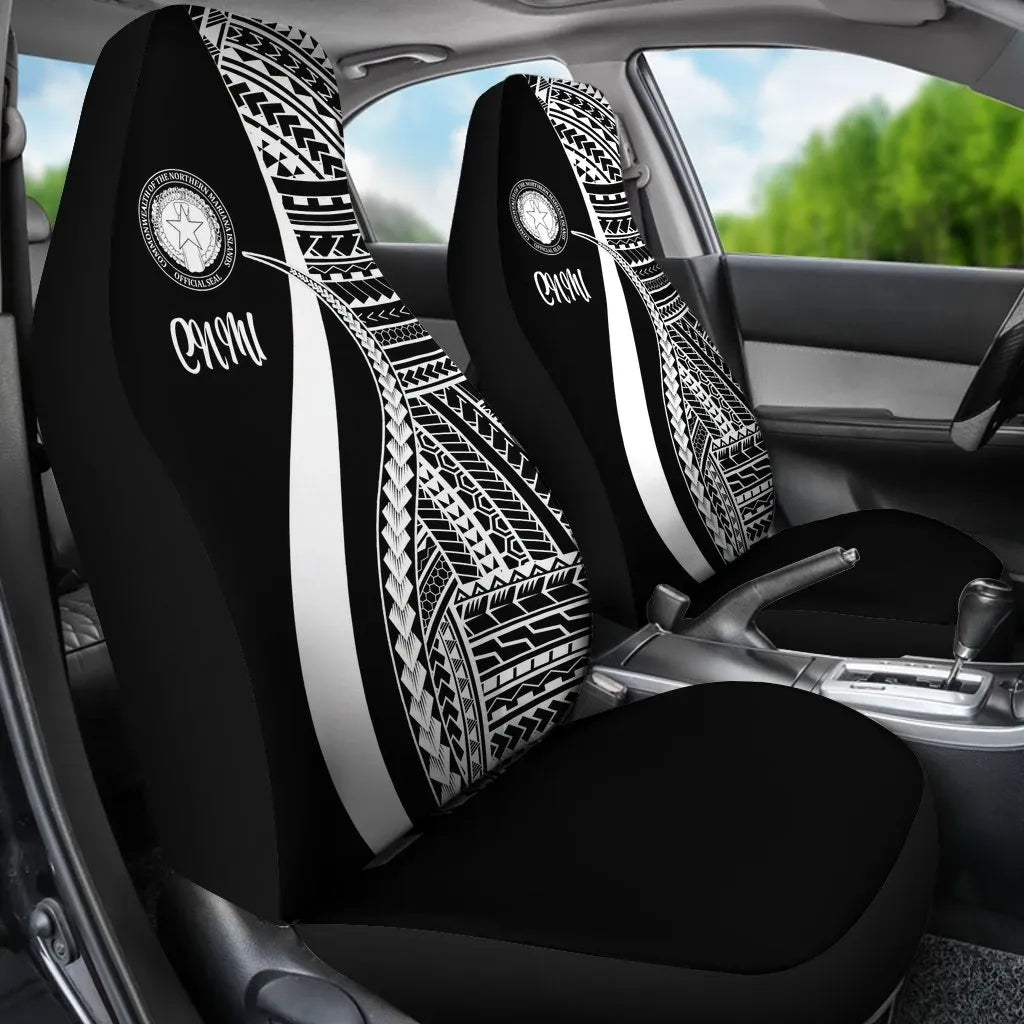 Northern Mariana Islands Car Seat Covers - White Polynesian Tentacle Tribal Pattern