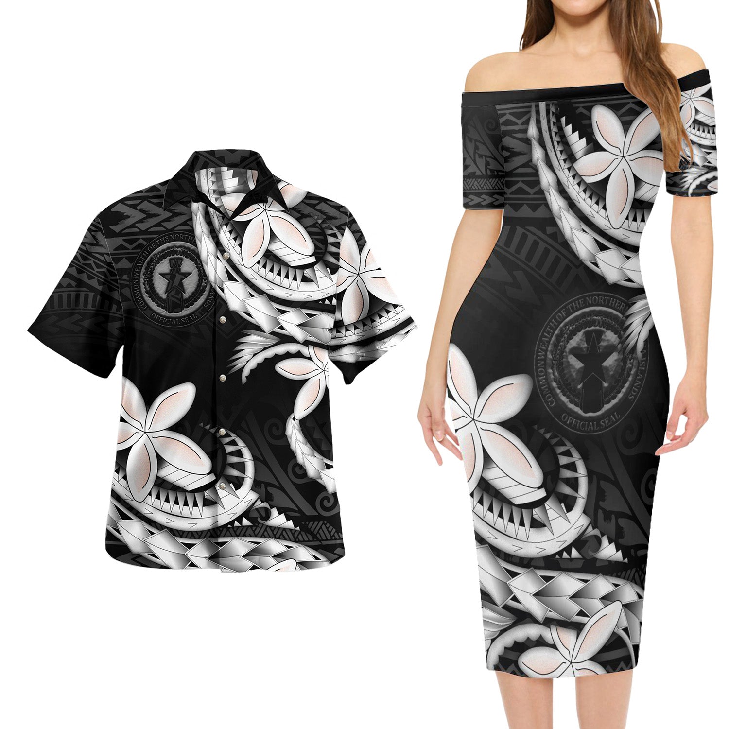 Northern Mariana Islands Combo Short Sleeve Dress And Shirt Polynesian Patterns Plumeria Flowers Special Style