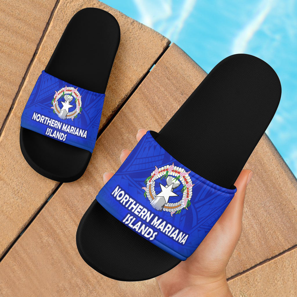 Northern Mariana Islands Flag Color With Traditional Patterns Slide Sandals