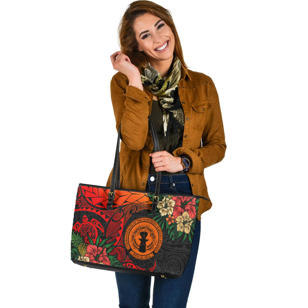 Northern Mariana Islands Leather Tote Bag Polynesian Turtle Tropical