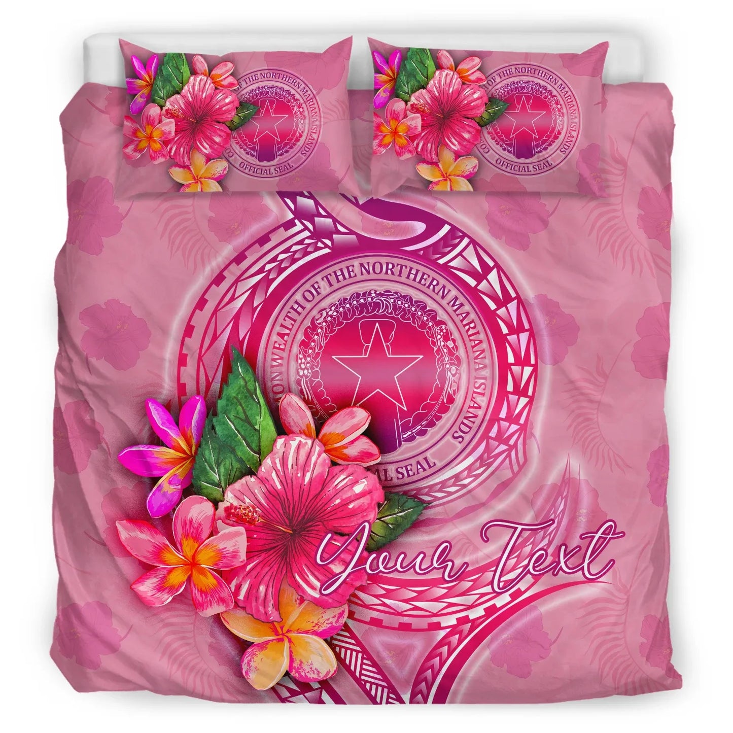 Northern Mariana Islands Polynesian Custom Personalised Bedding Set - Floral With Seal Pink