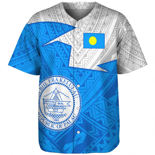 Palau Baseball Shirt Polynesian Tattoo Flag And Coat Of Arms