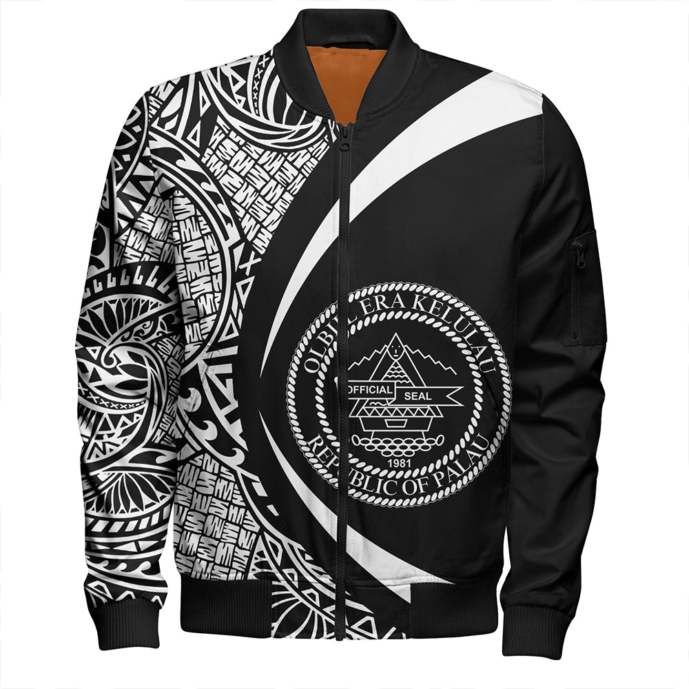 Palau Bomber Jacket Coat Of Arm Lauhala White Circle
