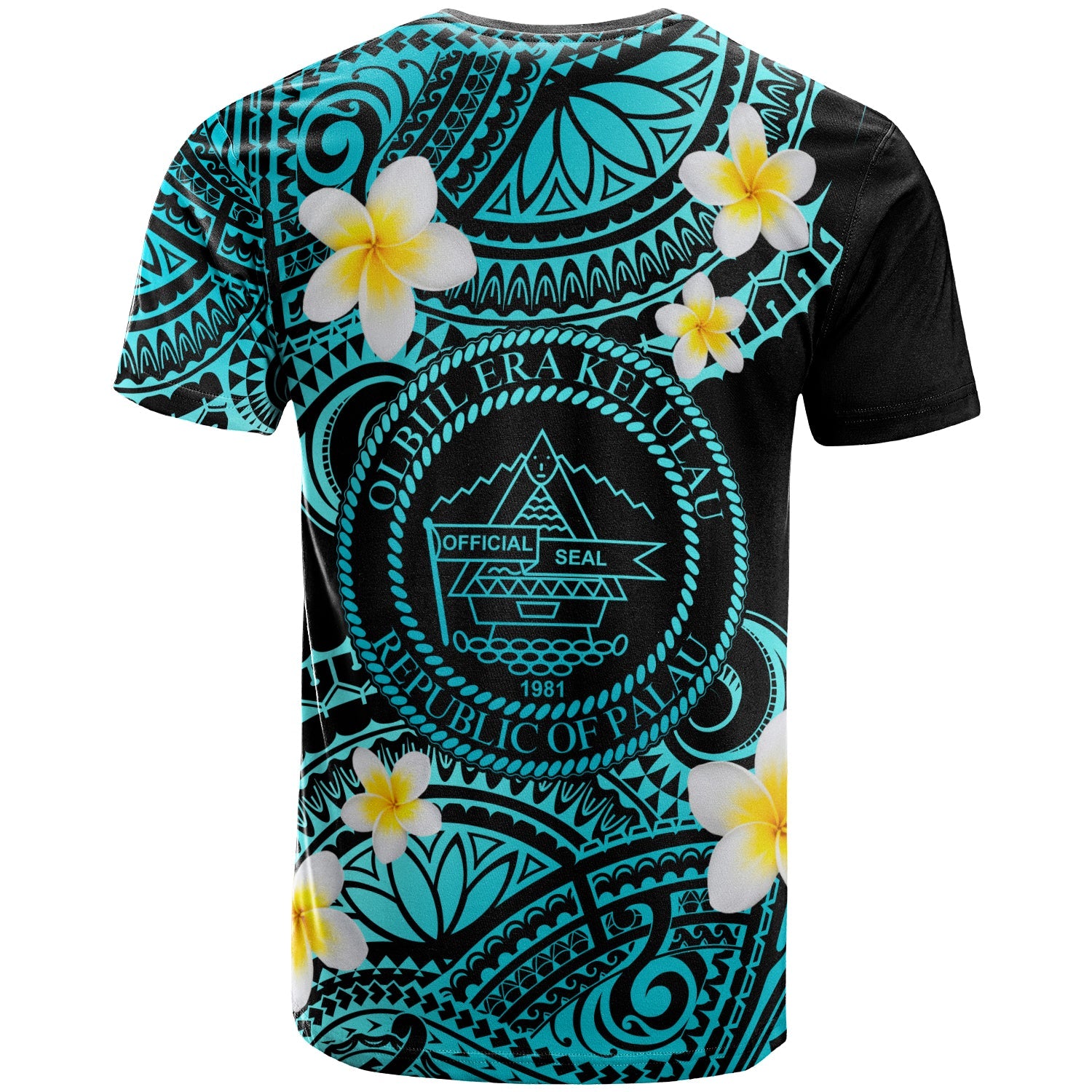 Palau Custom Personalised T-Shirt - Plumeria Polynesian Vibe Turquoise