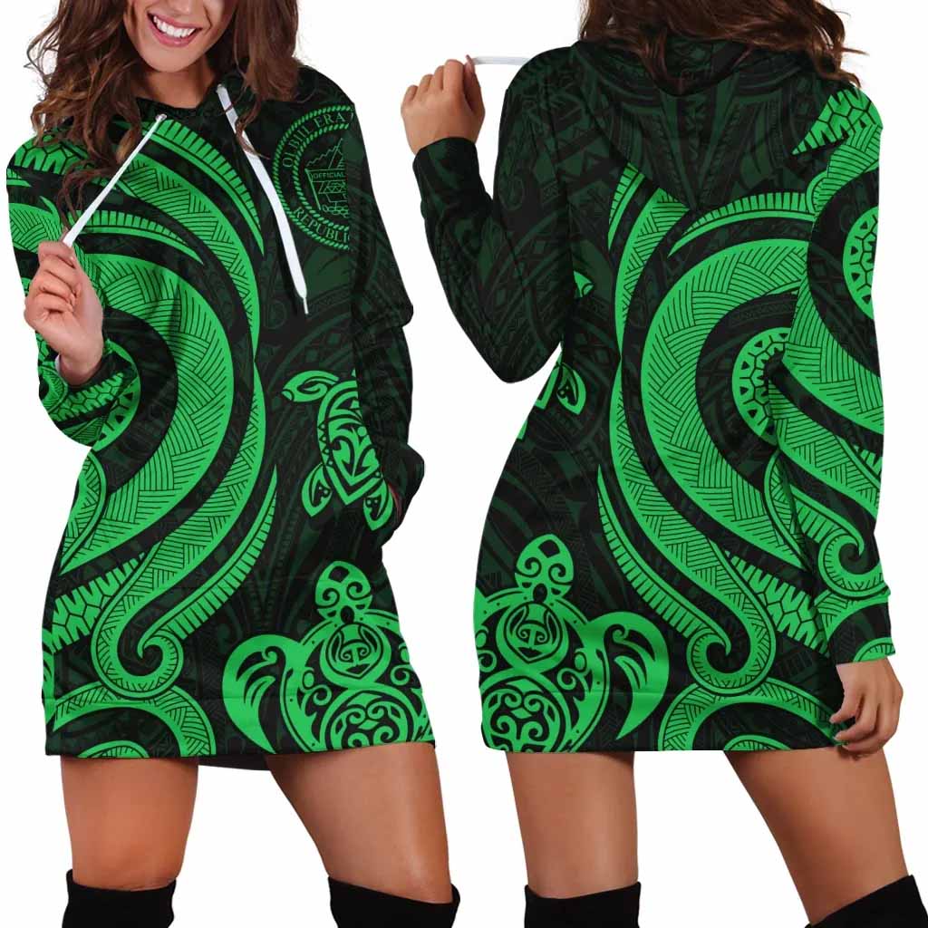 Palau Female Hoodie Dress - Green Tentacle Turtle