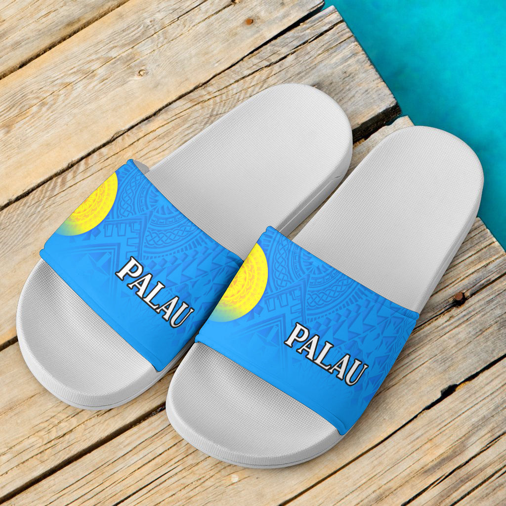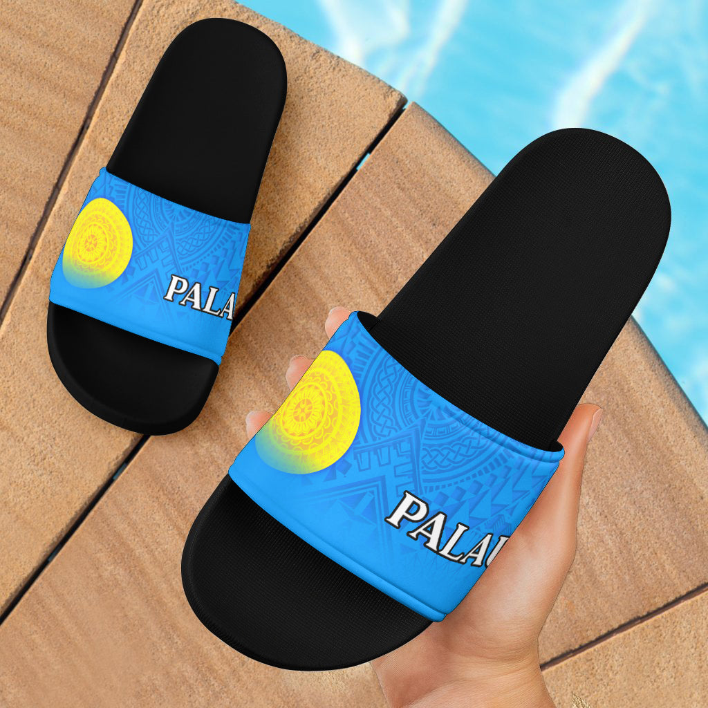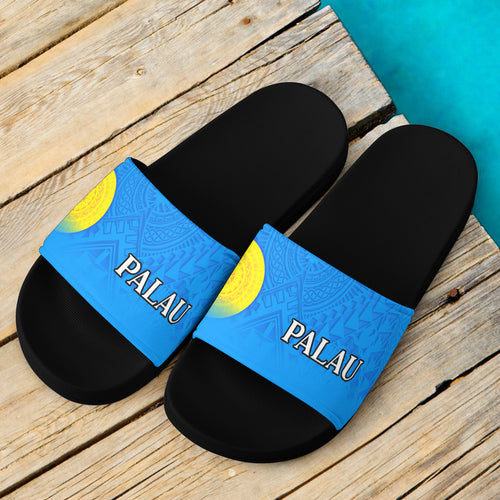 Palau Flag Color With Traditional Patterns Slide Sandals