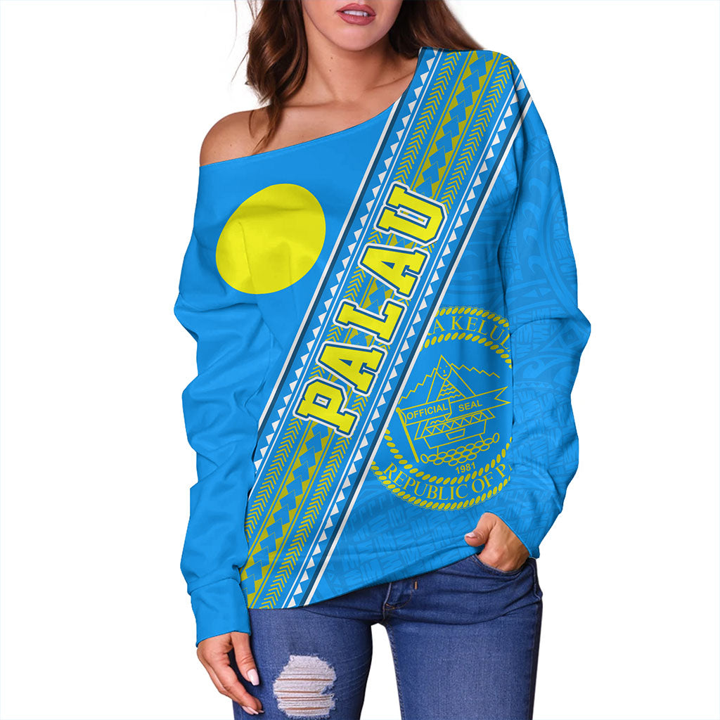 Palau Off Shoulder Sweatshirt Flag And Coat Of Arms