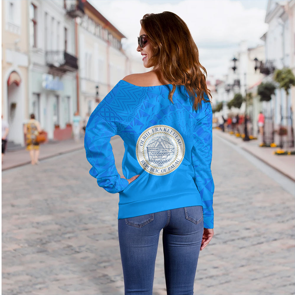 Palau Off Shoulder Sweatshirt Flag Color With Traditional Patterns