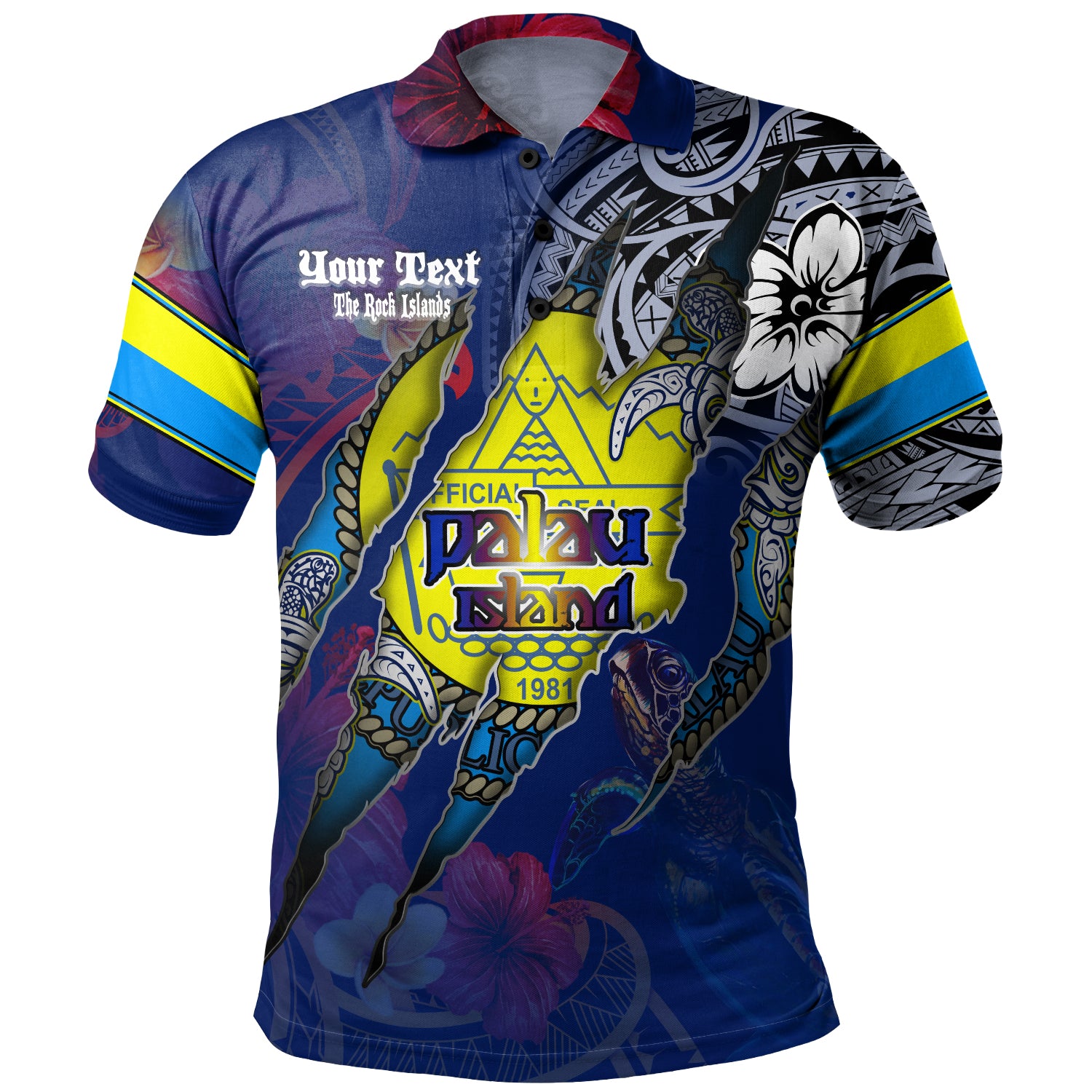 Palau Polo Shirt Custom Palauan Blood Inside Me Polynesian Sleeve Tattoo Tropical Blue