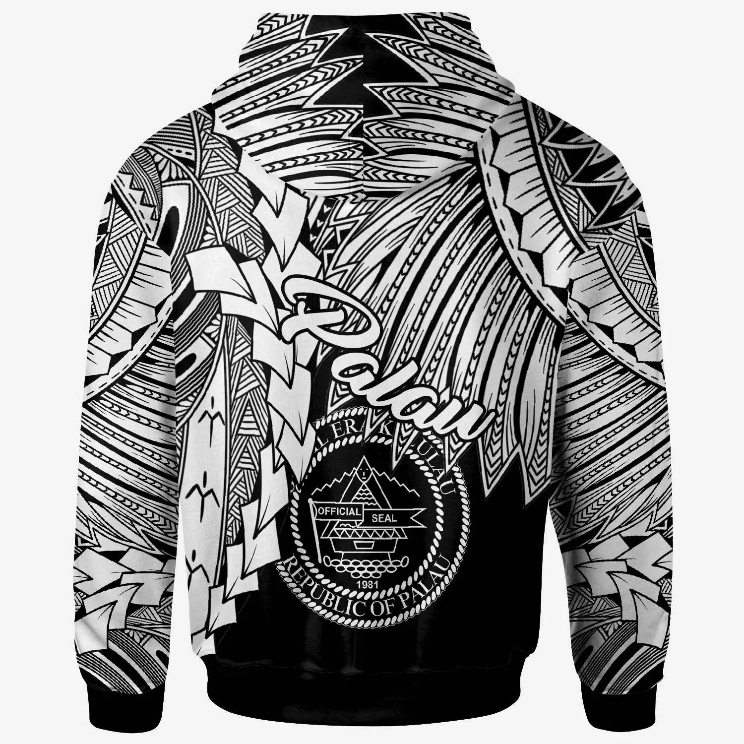 Palau Polynesian Custom Personalised Hoodie - Tribal Wave Tattoo White