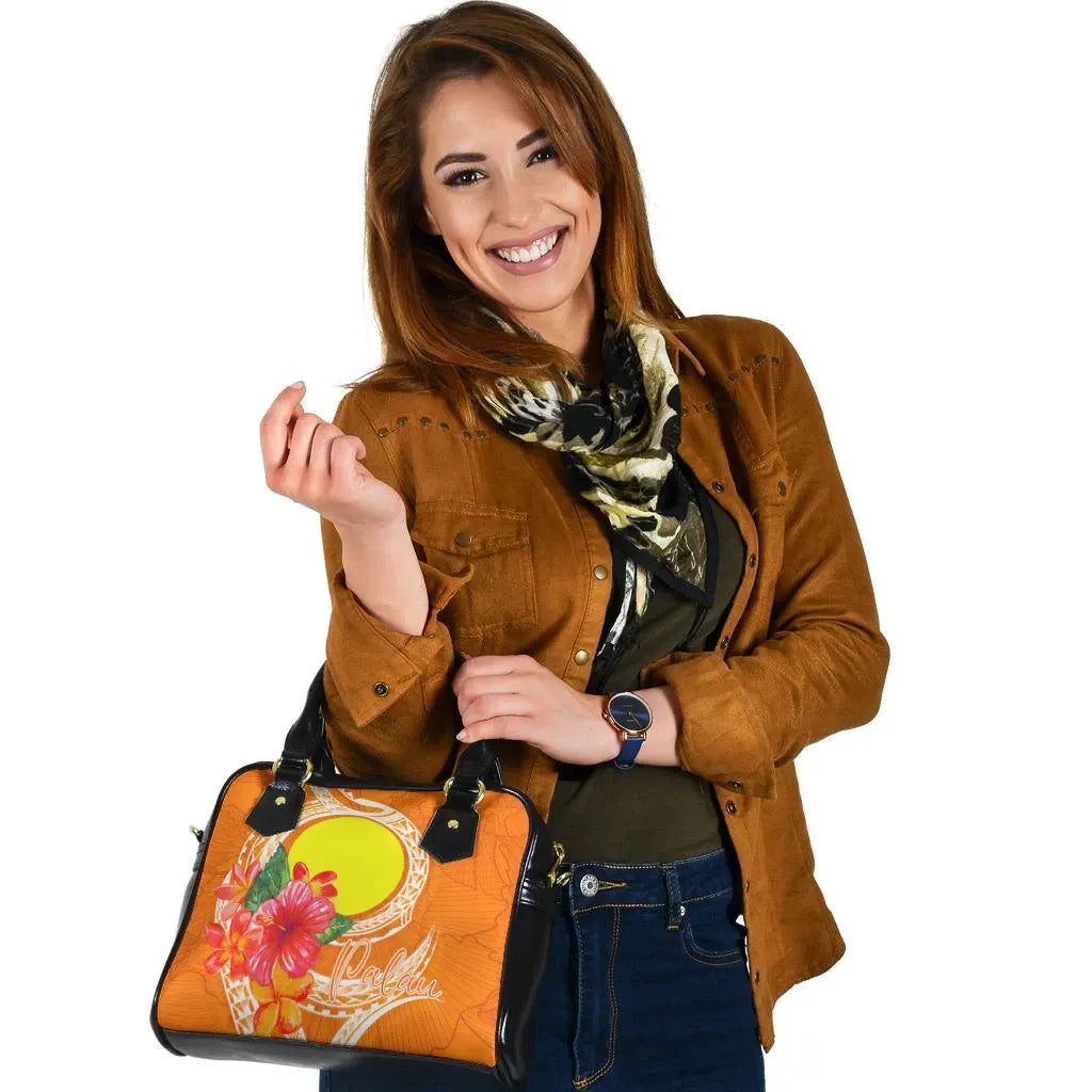 Palau Polynesian Shoulder Handbag - Orange Floral With Seal