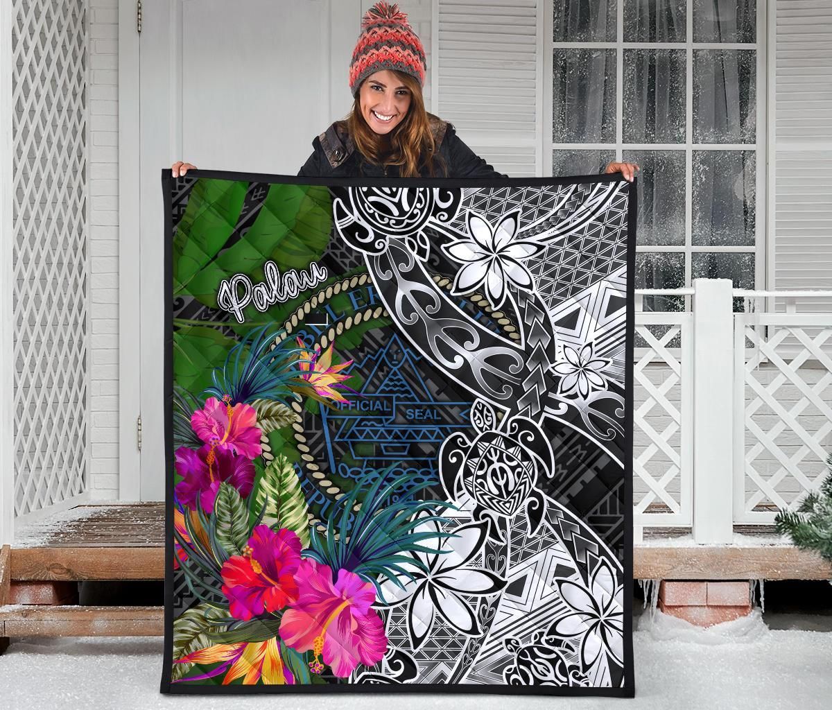 Palau Premium Quilt - Turtle Plumeria Banana Leaf Crest