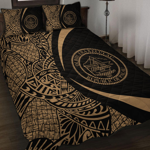 Palau Quilt Bed Set Lauhala Gold Circle Style