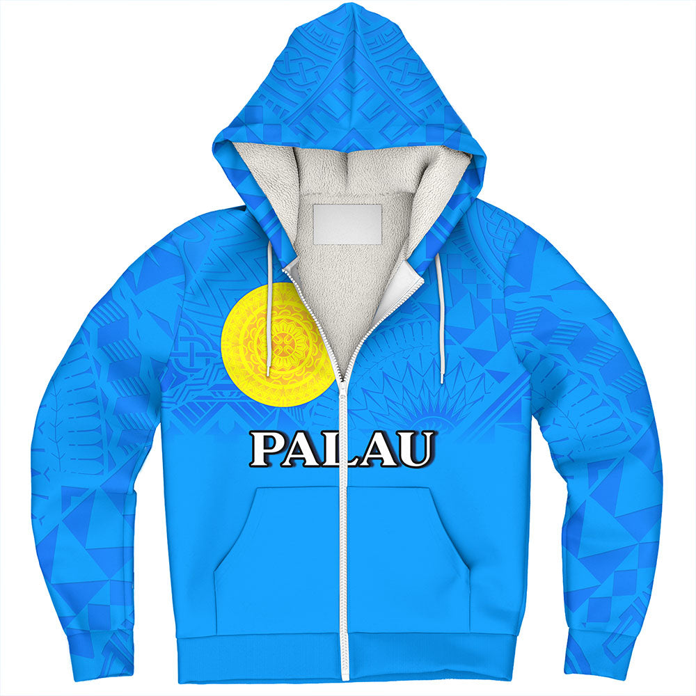 Palau Sherpa Hoodie Flag Color With Traditional Patterns