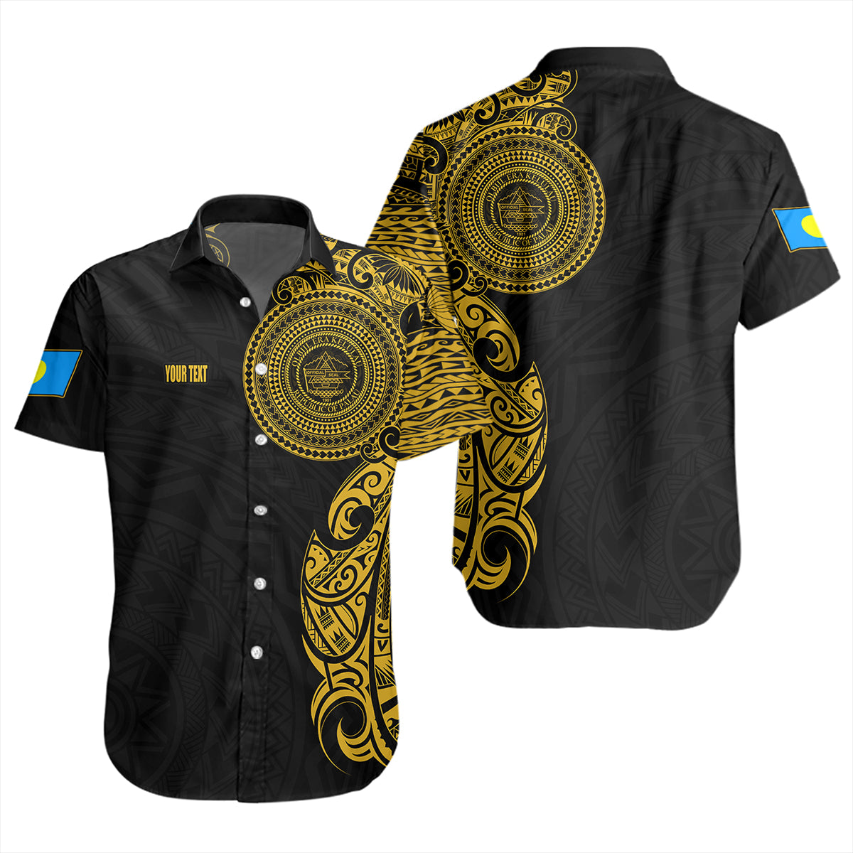 Palau Short Sleeve Shirt Custom Polynesian Half Sleeve Gold Tattoo With Seal Black