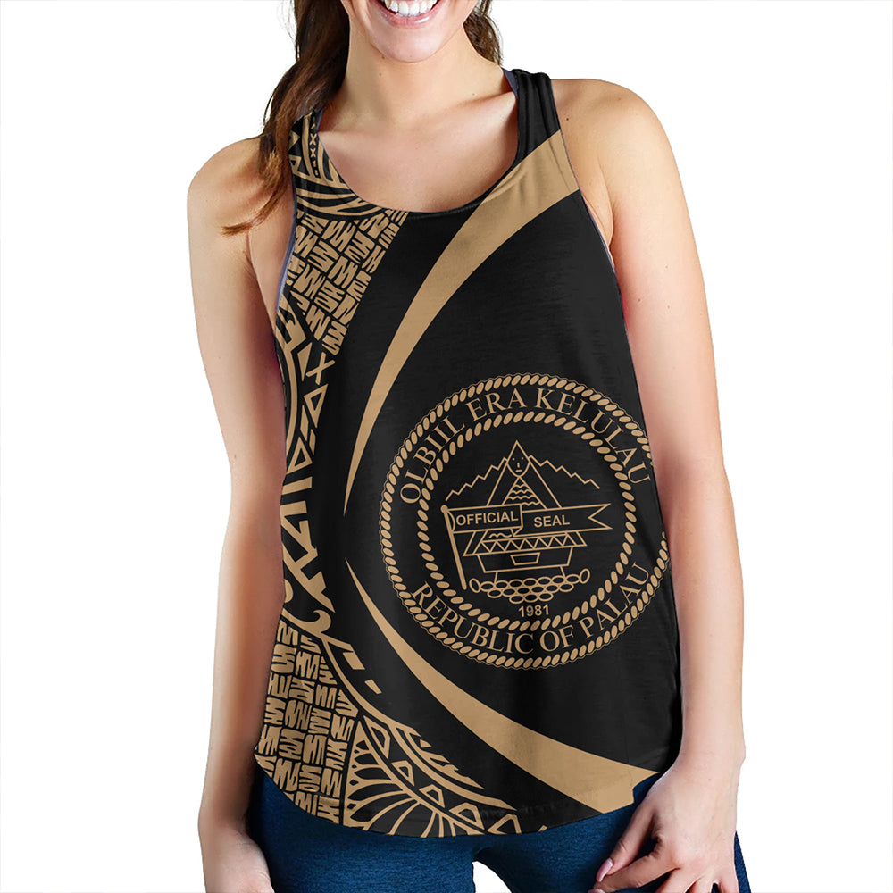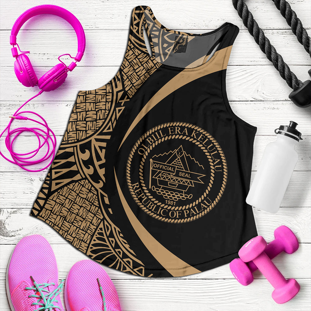 Palau Women Tank Coat Of Arm Lauhala Gold Circle