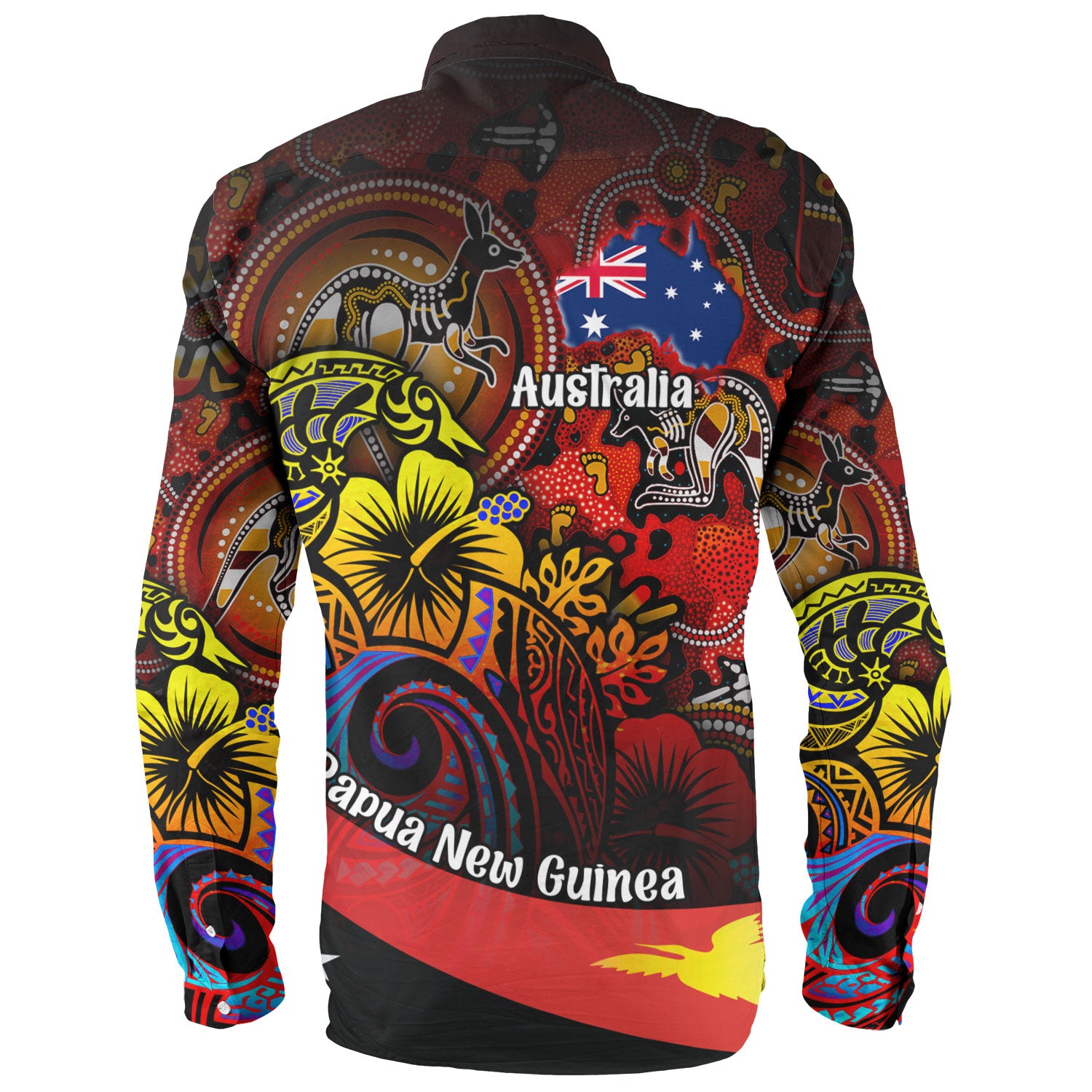 Papua New Guinea And Australia Birds Of Paradise With Aboriginal Long Sleeve Shirt