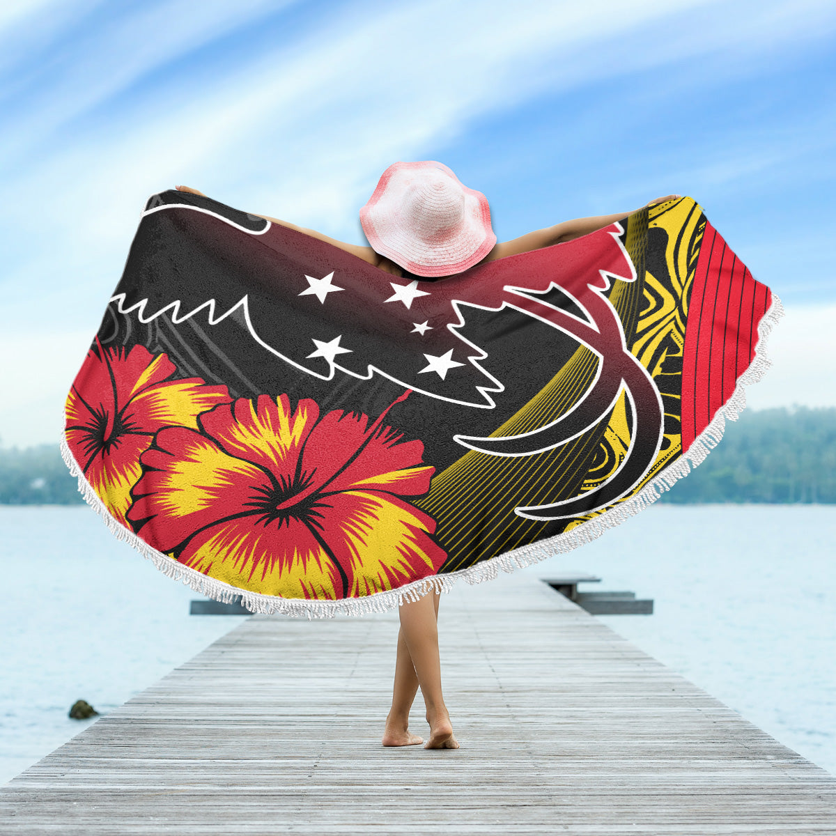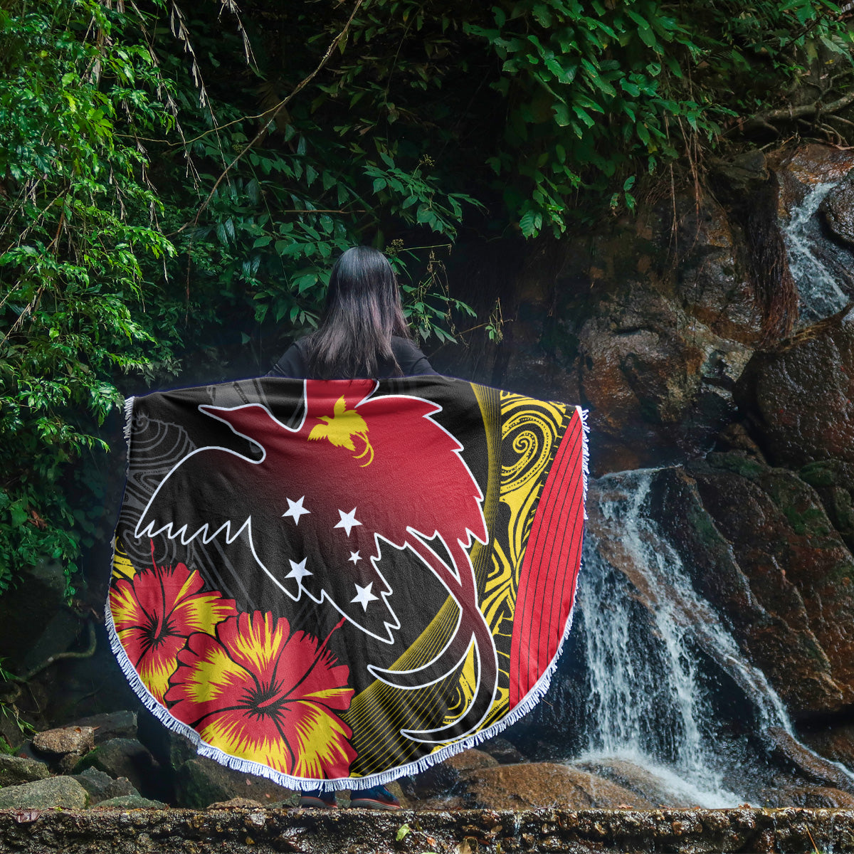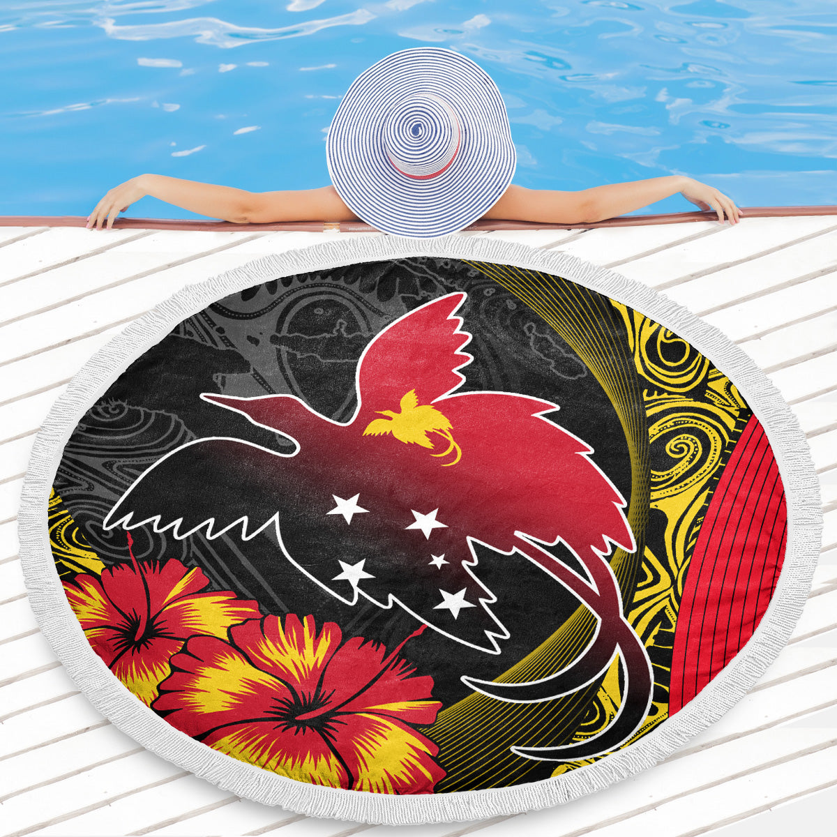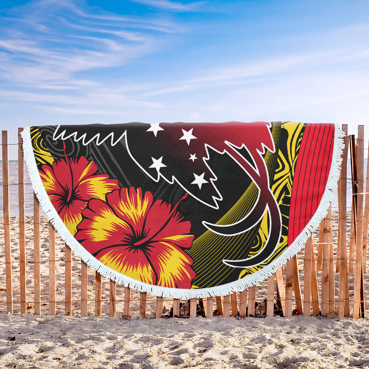 Papua New Guinea Beach Blanket Paradise Bird With Tribal Pattern