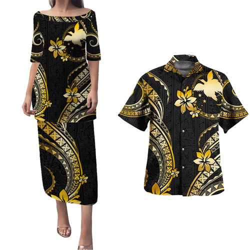 Papua New Guinea Combo Puletasi And Shirt Golden Polynesian Pattern