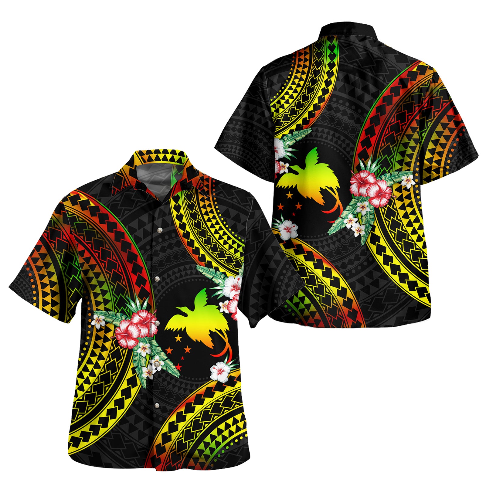 Papua New Guinea Combo Short Sleeve Dress And Shirt Polynesian Pattern Reggae Color Hibiscus Flowers