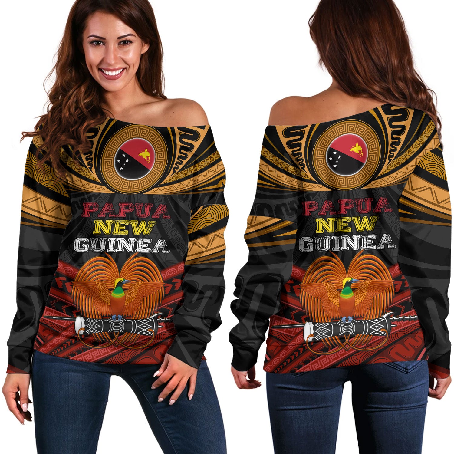 Papua New Guinea Custom Personalised Off Shoulder Sweatshirt Papua New Guinea Fabric Pattern Design