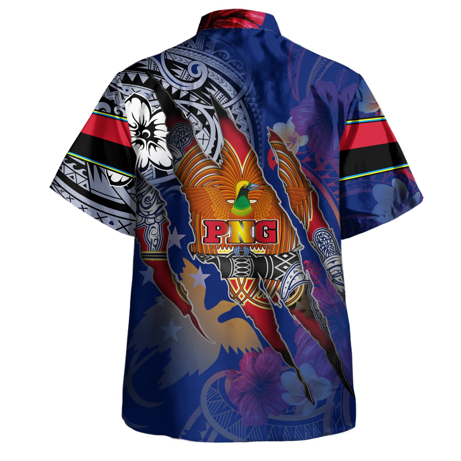 Papua New Guinea Hawaiian Shirt Custom Papuan Blood Inside Me Polynesian Sleeve Tattoo Tropical Blue
