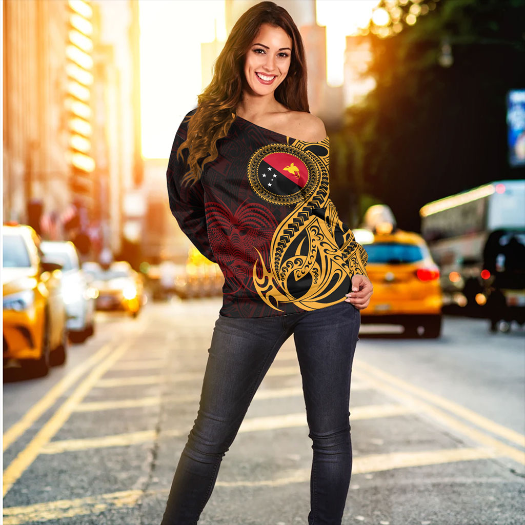 Papua New Guinea Off Shoulder Sweatshirt PNG Tribal Tattoo Symbols