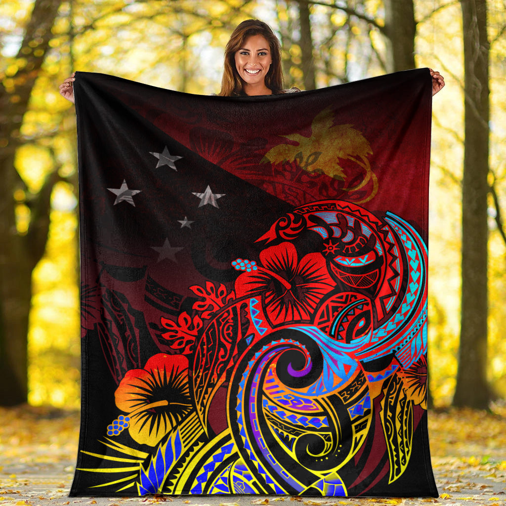 Papua New Guinea Premium Blanket Birds Of Paradise With Flag Color Style