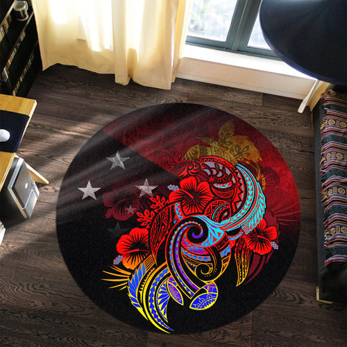 Papua New Guinea Round Rug Birds Of Paradise With Flag Color Style