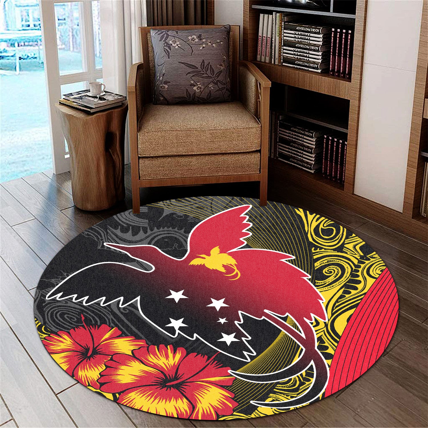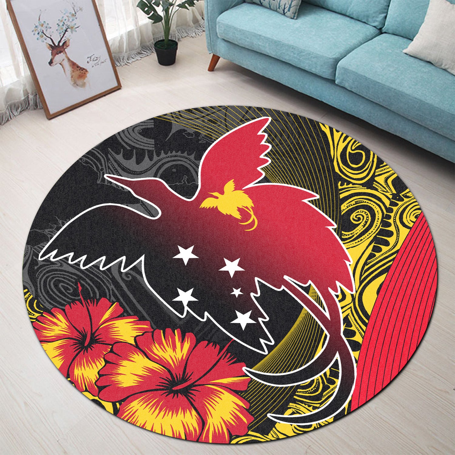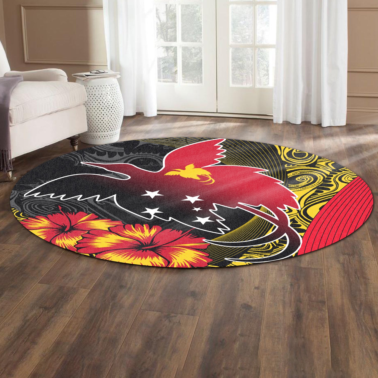 Papua New Guinea Round Rug Paradise Bird With Tribal Pattern