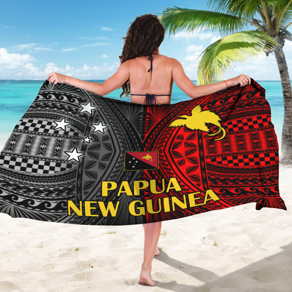 Papua New Guinea Seal With Flag Polynesian Pattern Sarong