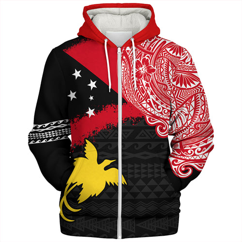Papua Sherpa Hoodie Melanesian Flag With Coat Of Arms
