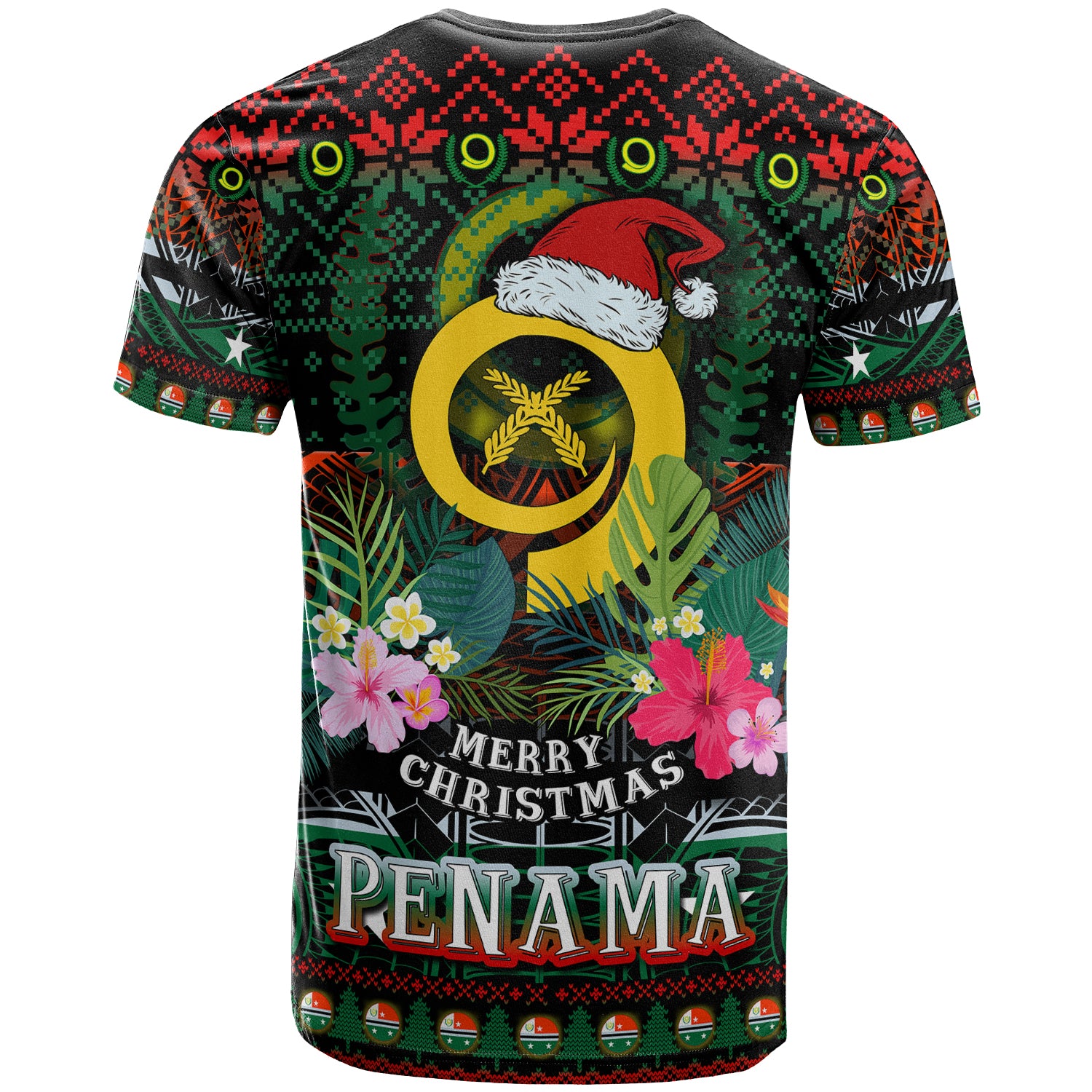 Penama Polynesian Christmas T-Shirt - Custom Penama Vanuatu Coat of Arms Christmas Hat Polynesian Patterns T-Shirt