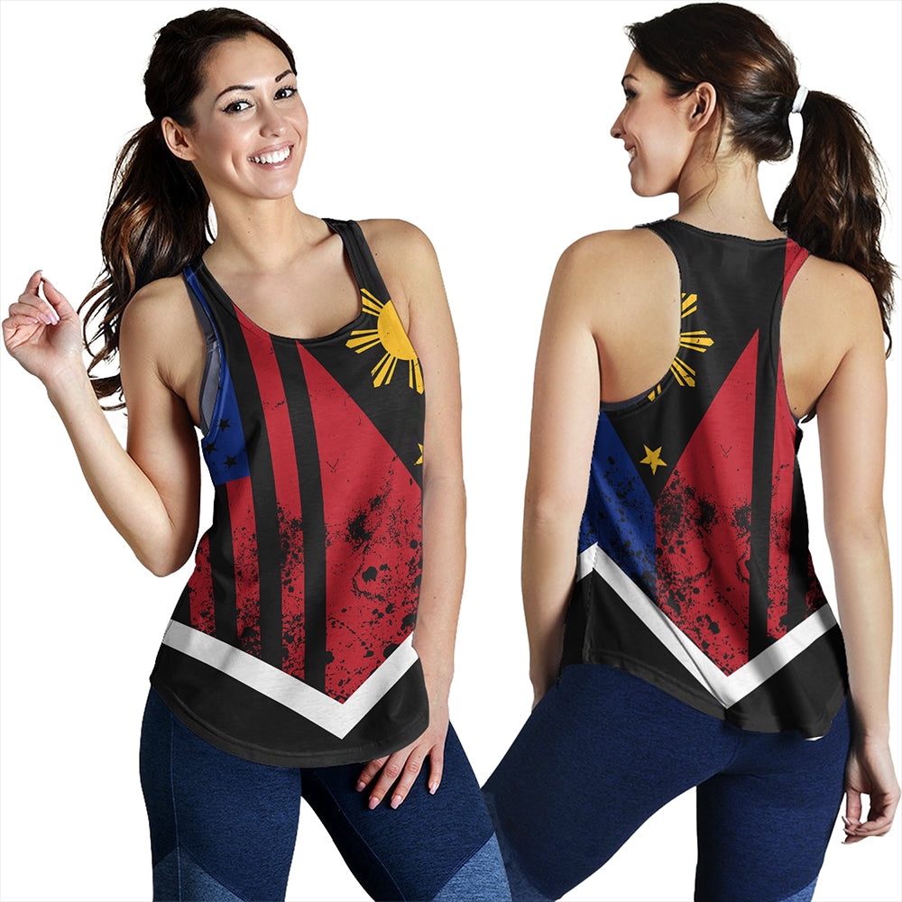 Philippines And American Women Tank Flag Half Concept Brush Style