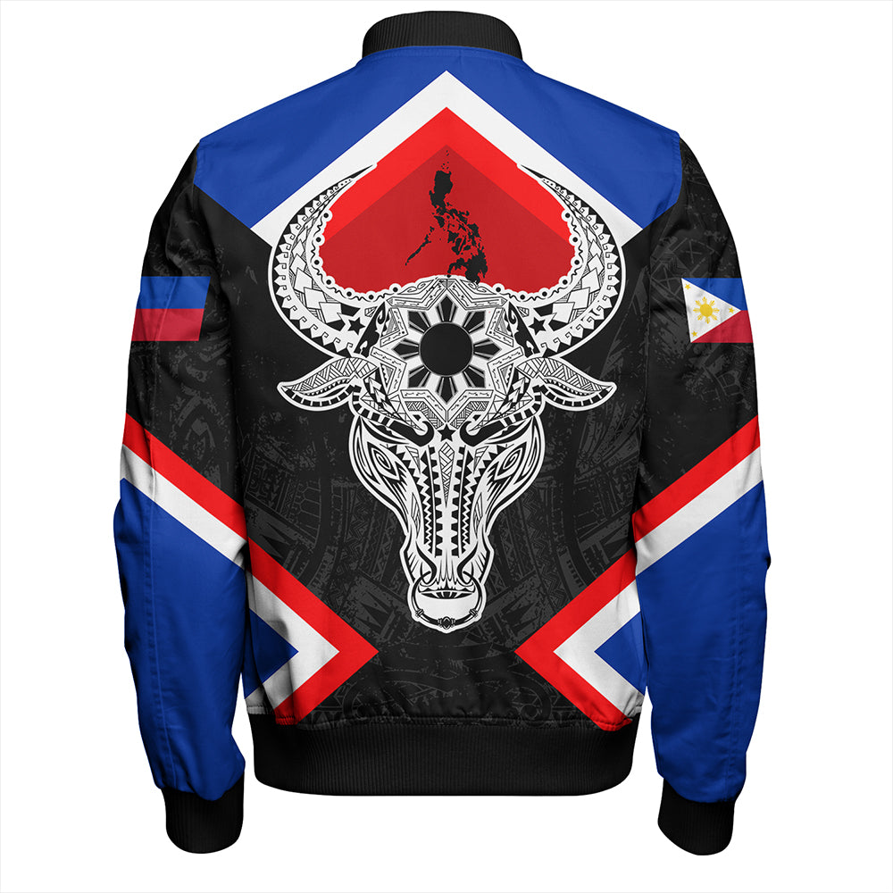 Philippines Bomber Jacket Water Buffalo Sun Tribal Style