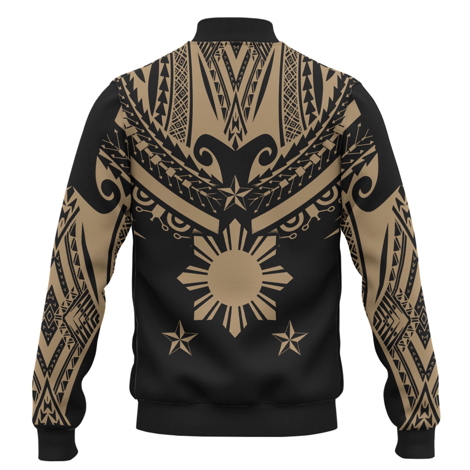 Philippines Filipinos Baseball Jacket Filipinos Sun Tribal Tattoo Gold Color Style