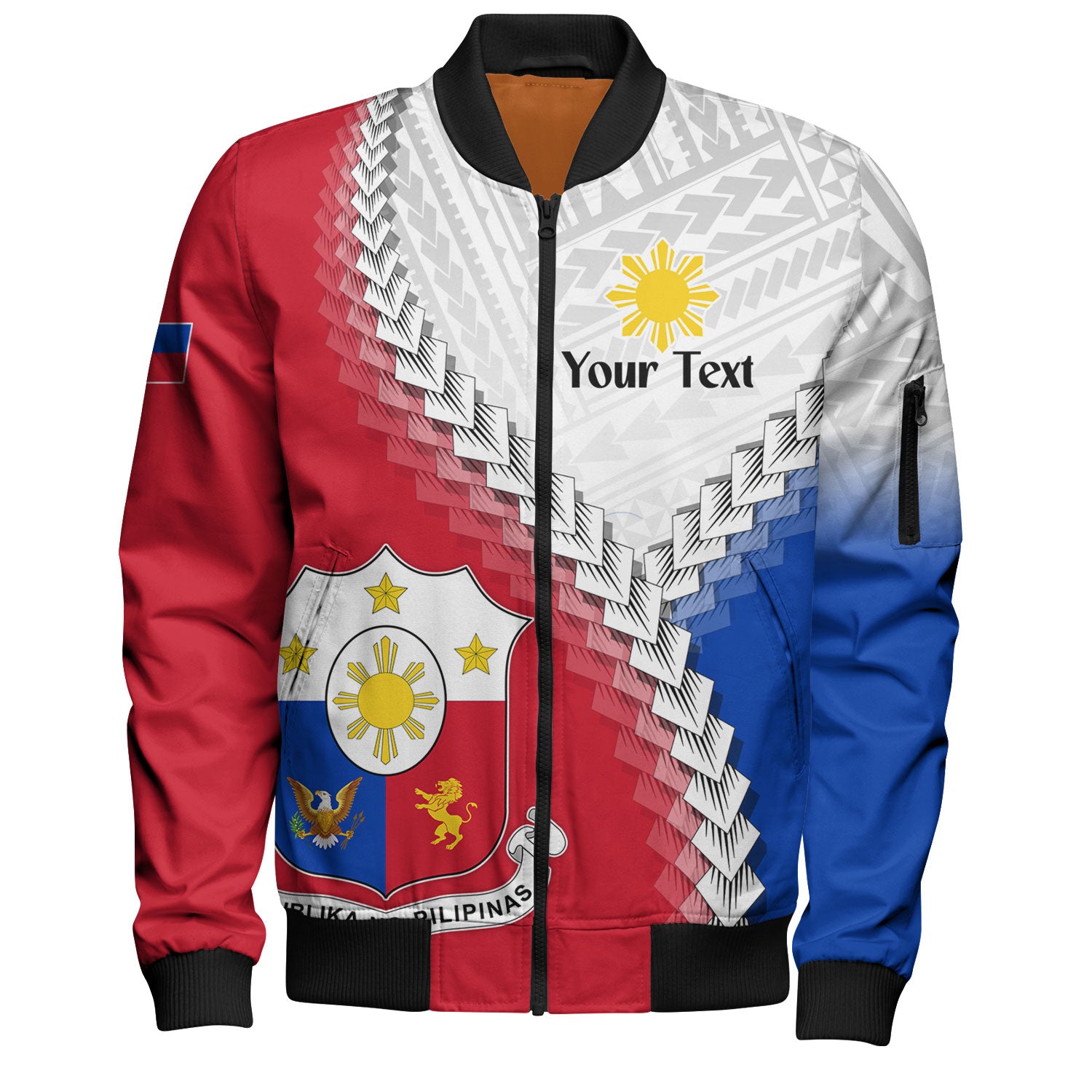 Philippines Filipinos Bomber Jacket Custom Filipino Coat Of Arms With Tribal Patterns Flag Style
