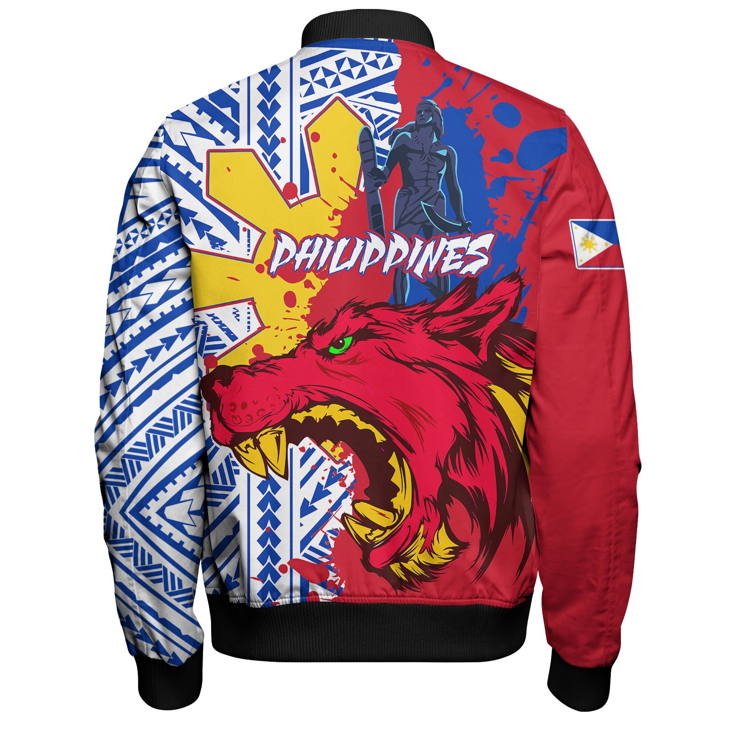 Philippines Filipinos Bomber Jacket Custom Lapu-Lapu And The Wolf Tribal Polynesian Style