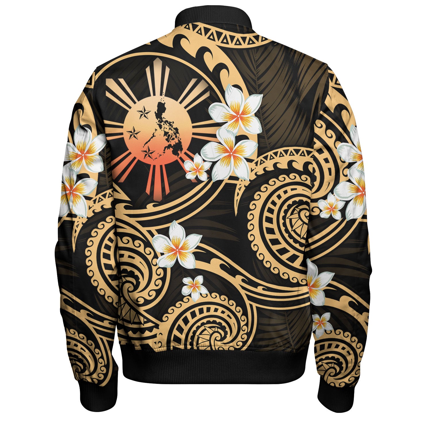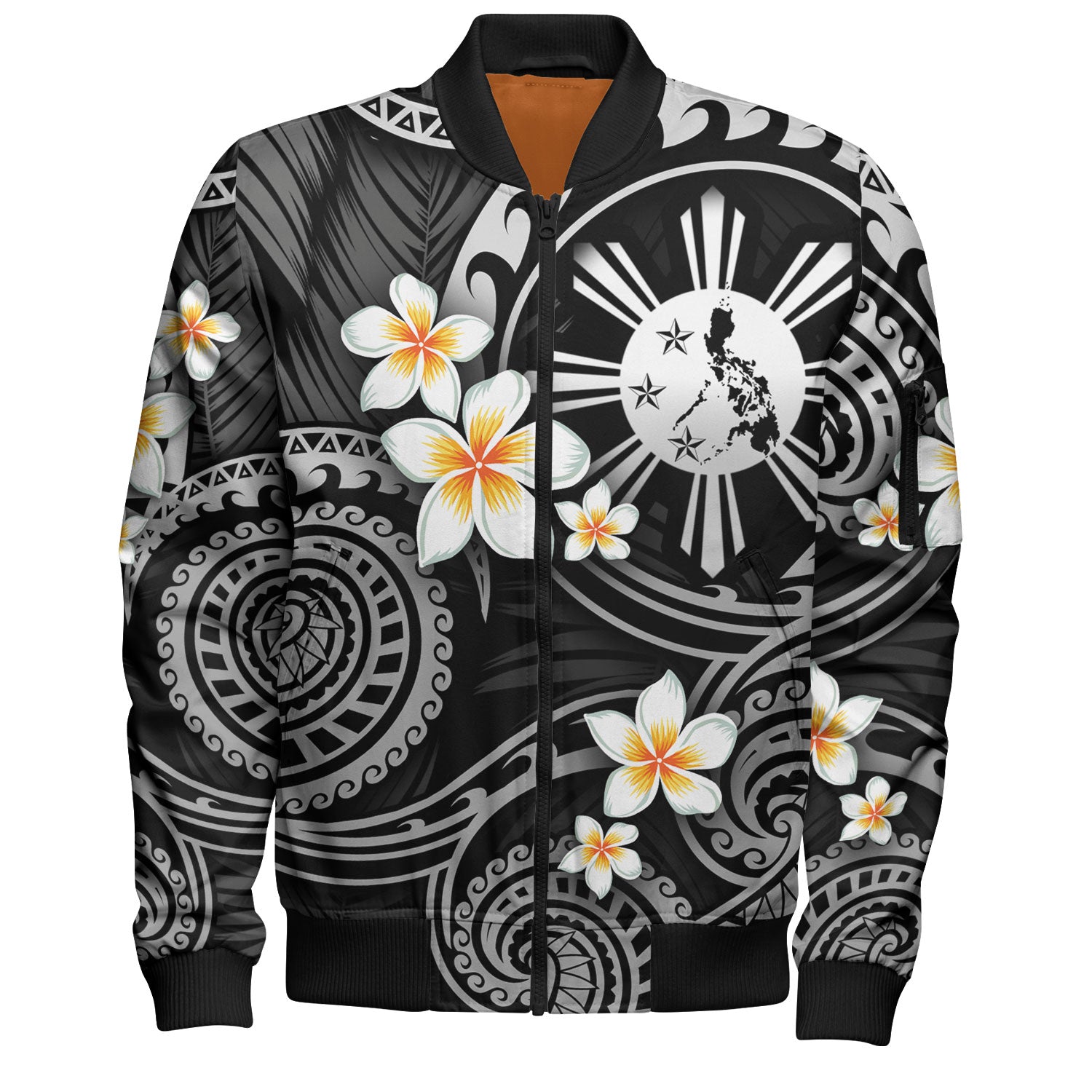 Philippines Filipinos Bomber Jacket Plumeria Flowers Tribal Motif Style