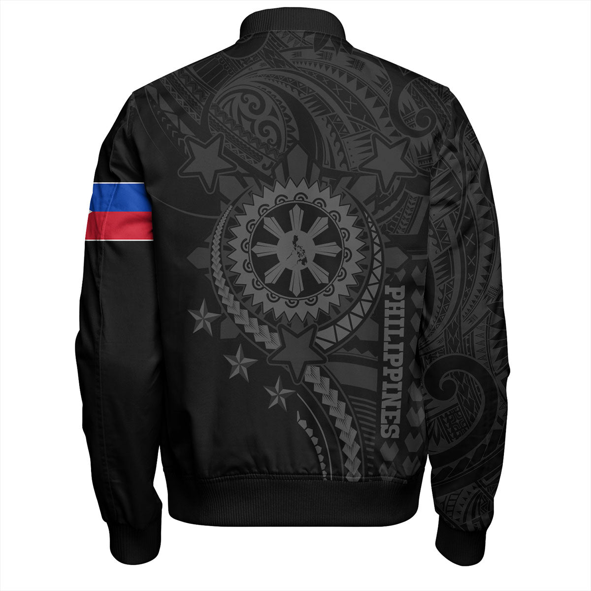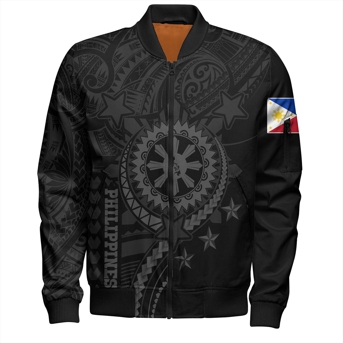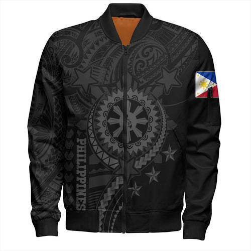 Philippines Filipinos Bomber Jacket - Proud To Be Filipino Tribal Sun Batok Grey Style