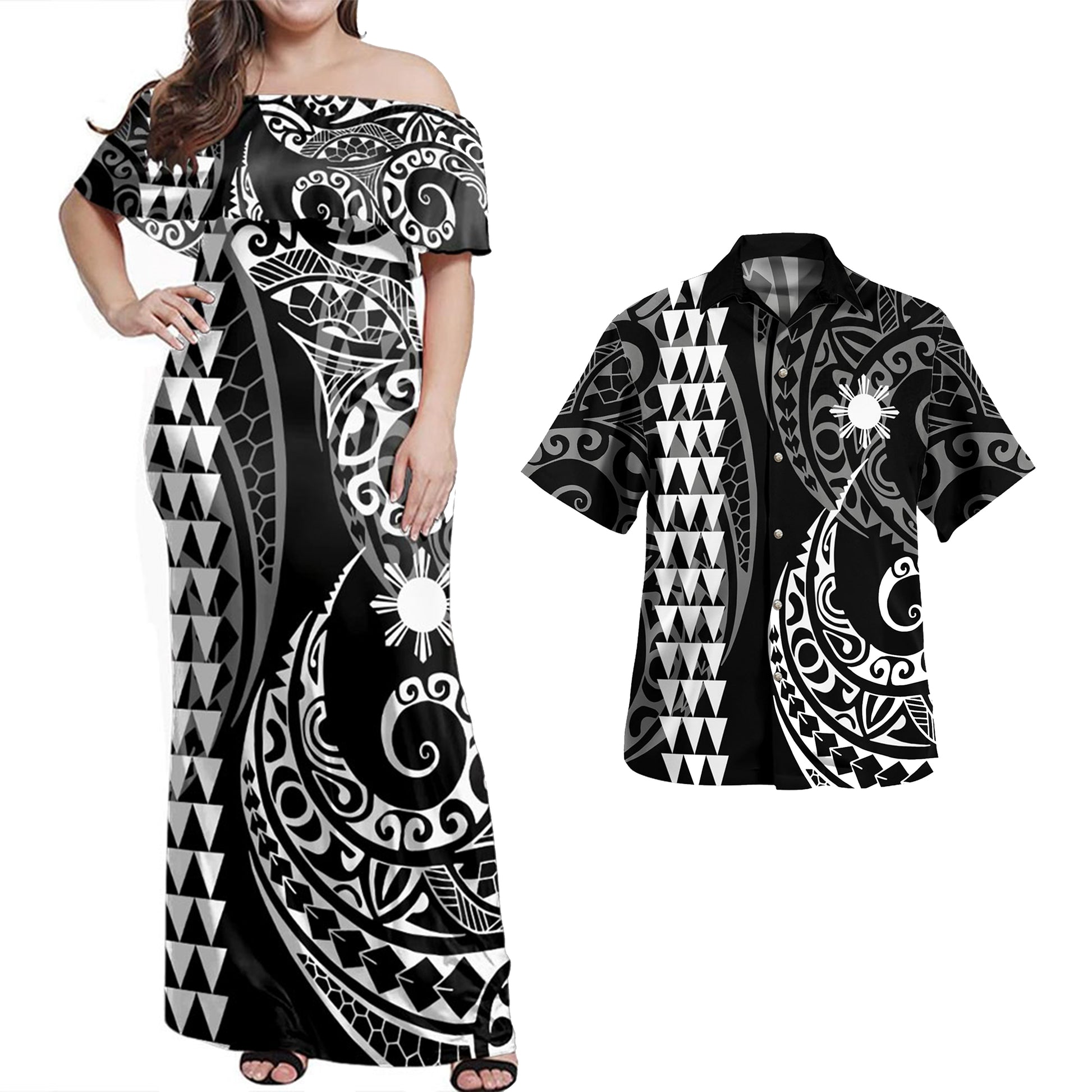 Philippines Filipinos Combo Dress And Shirt Kakau Style White