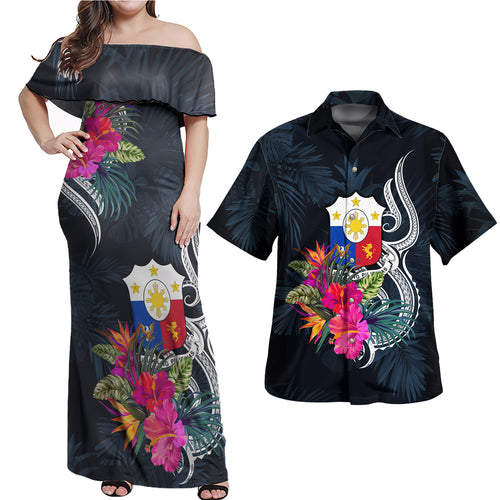 Philippines Filipinos Combo Off Shoulder Long Dress And Shirt Tropical Flower