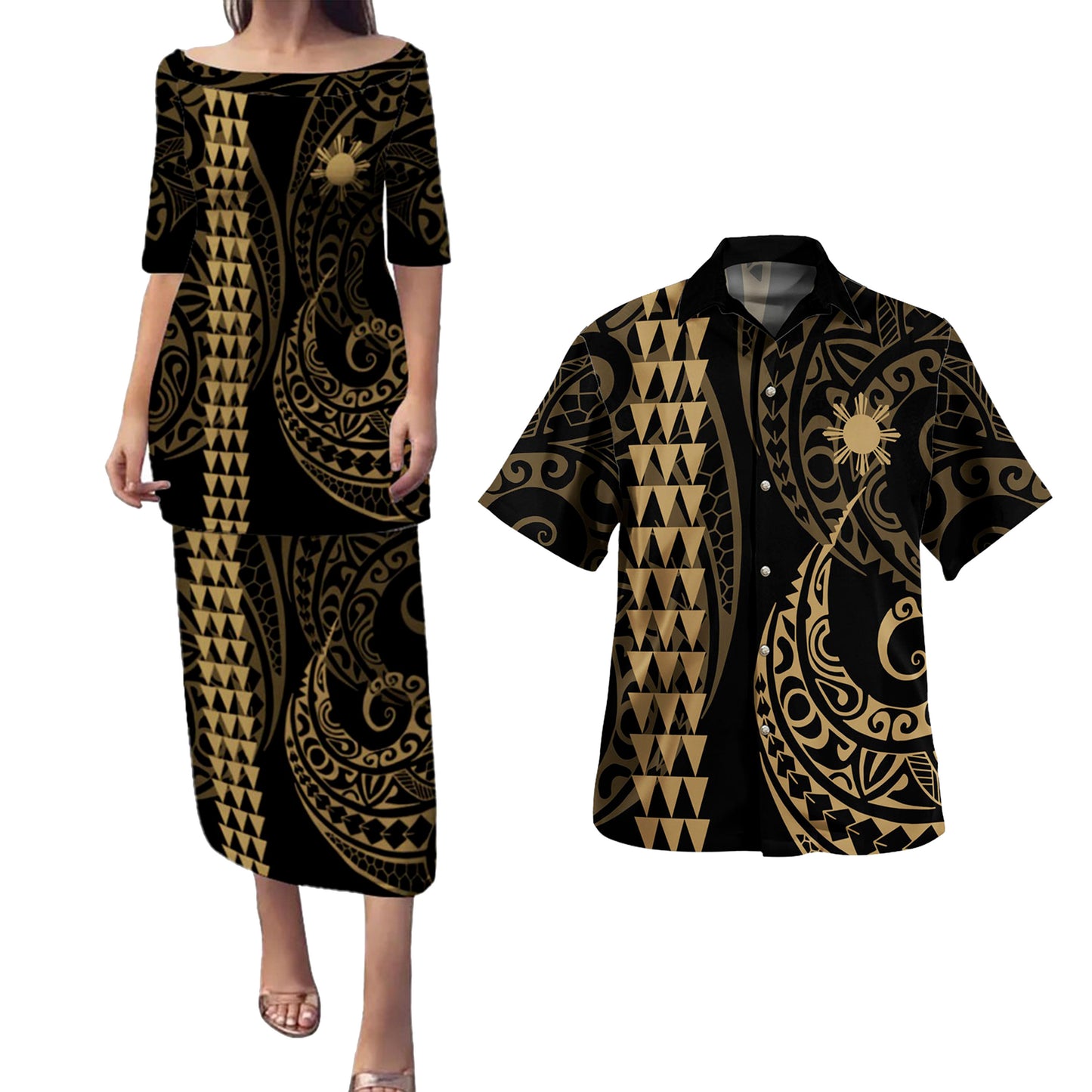 Philippines Filipinos Combo Puletasi And Shirt Kakau Style Gold