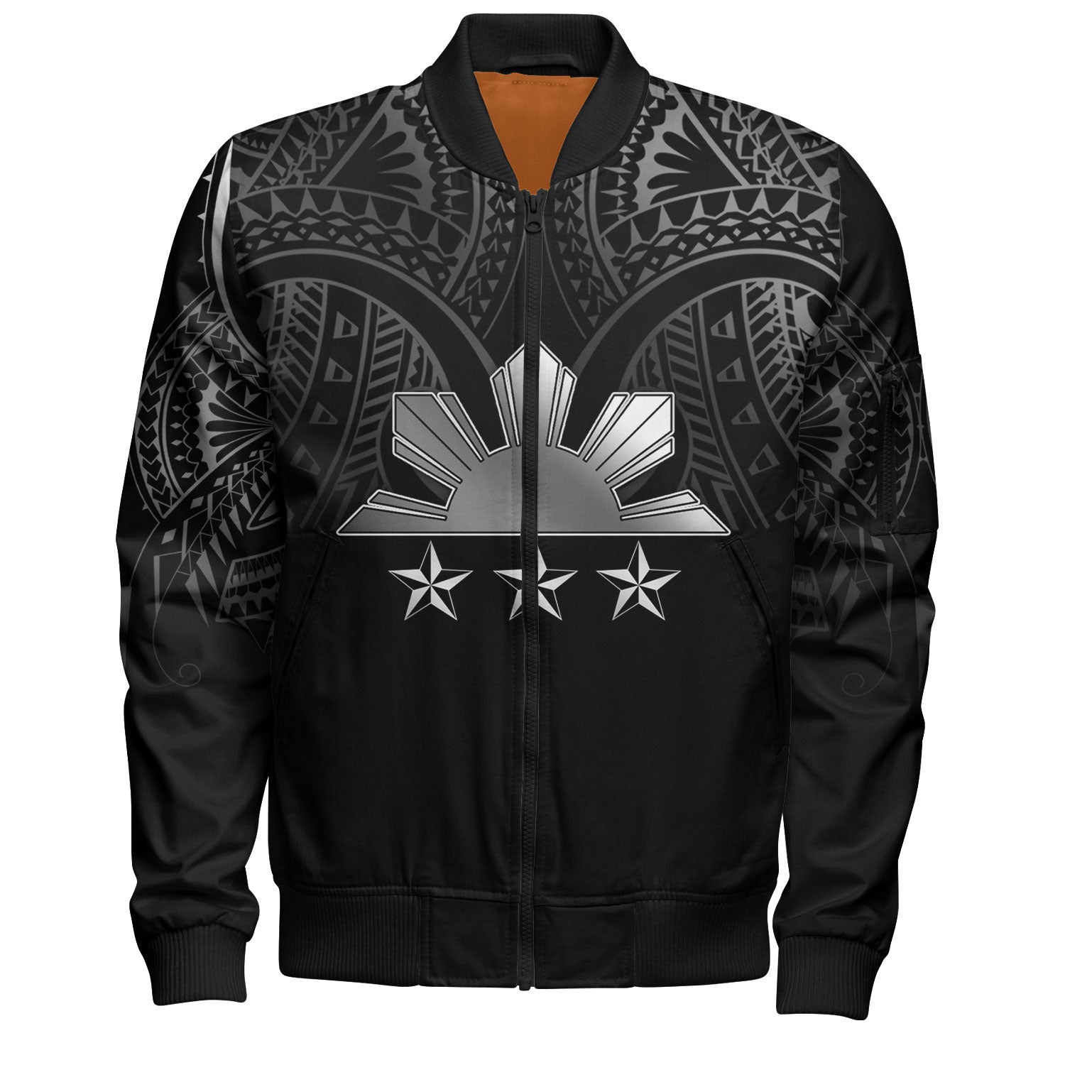 Philippines Filipinos Bomber Jacket Black Sun And Stars Tribal Tatau Design