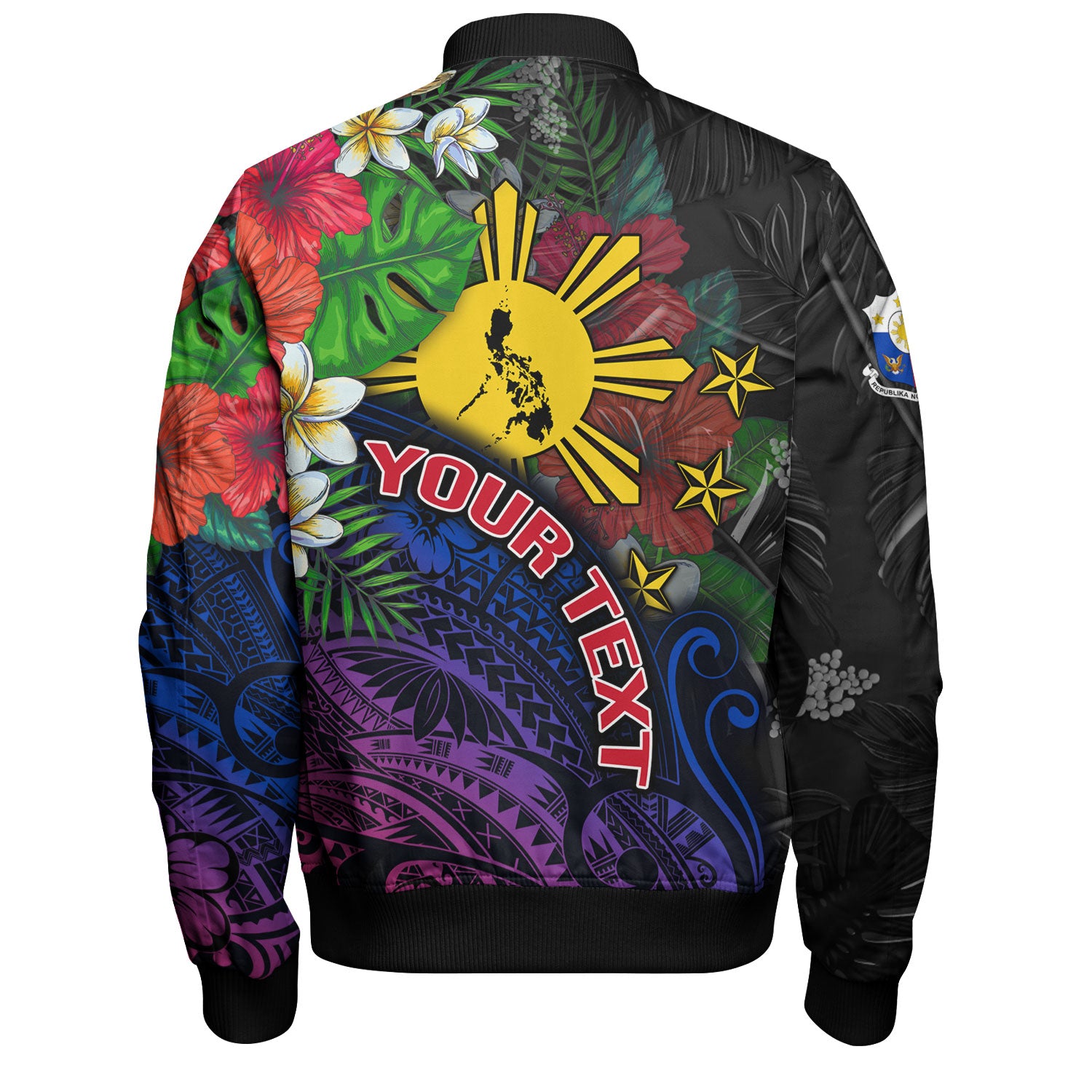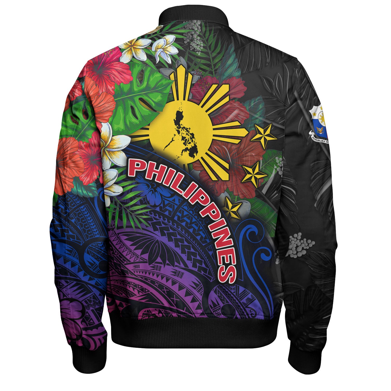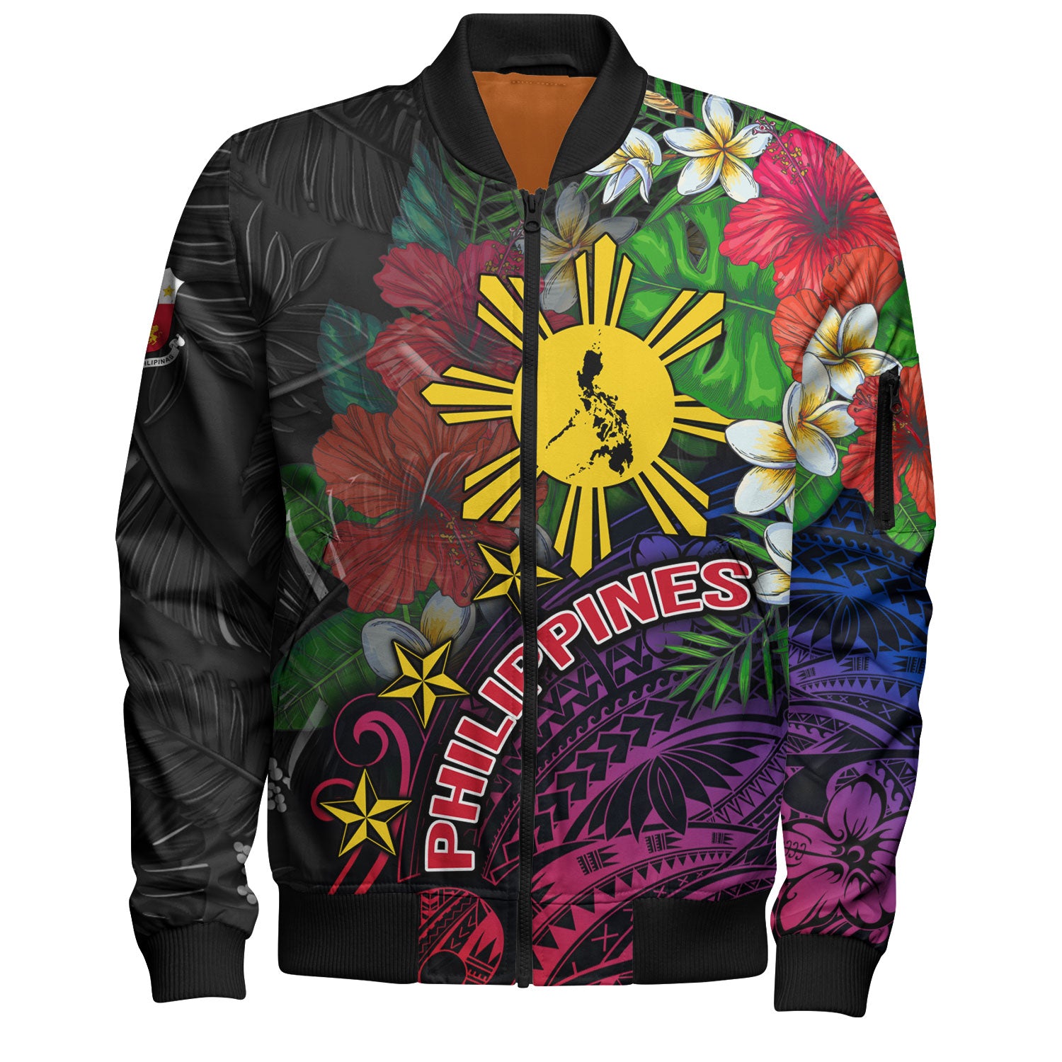 Philippines Filipinos Bomber Jacket Hibiscus And Plumeria With Palm Branches Vintage Style